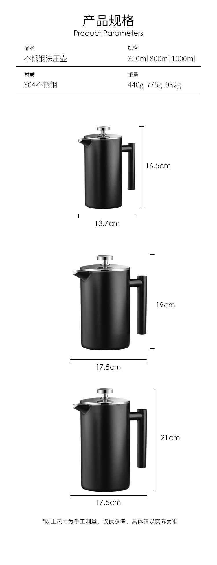 304 из нержавеющей стали Кофейник двухслойный Френч-пресс Кофеварка