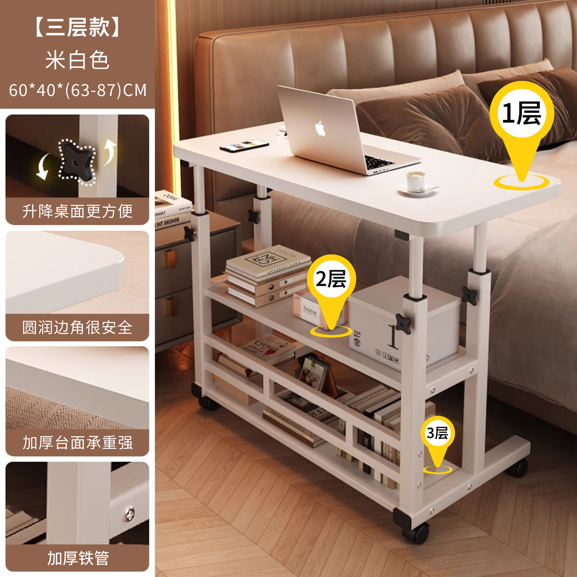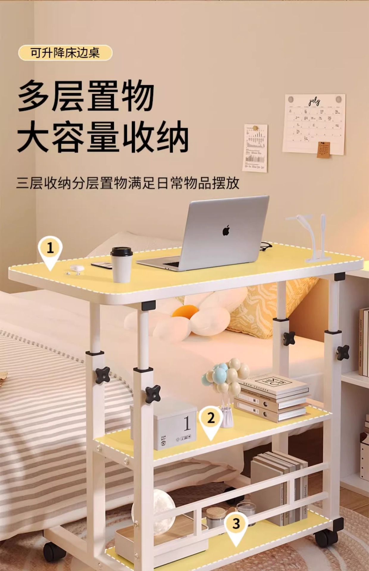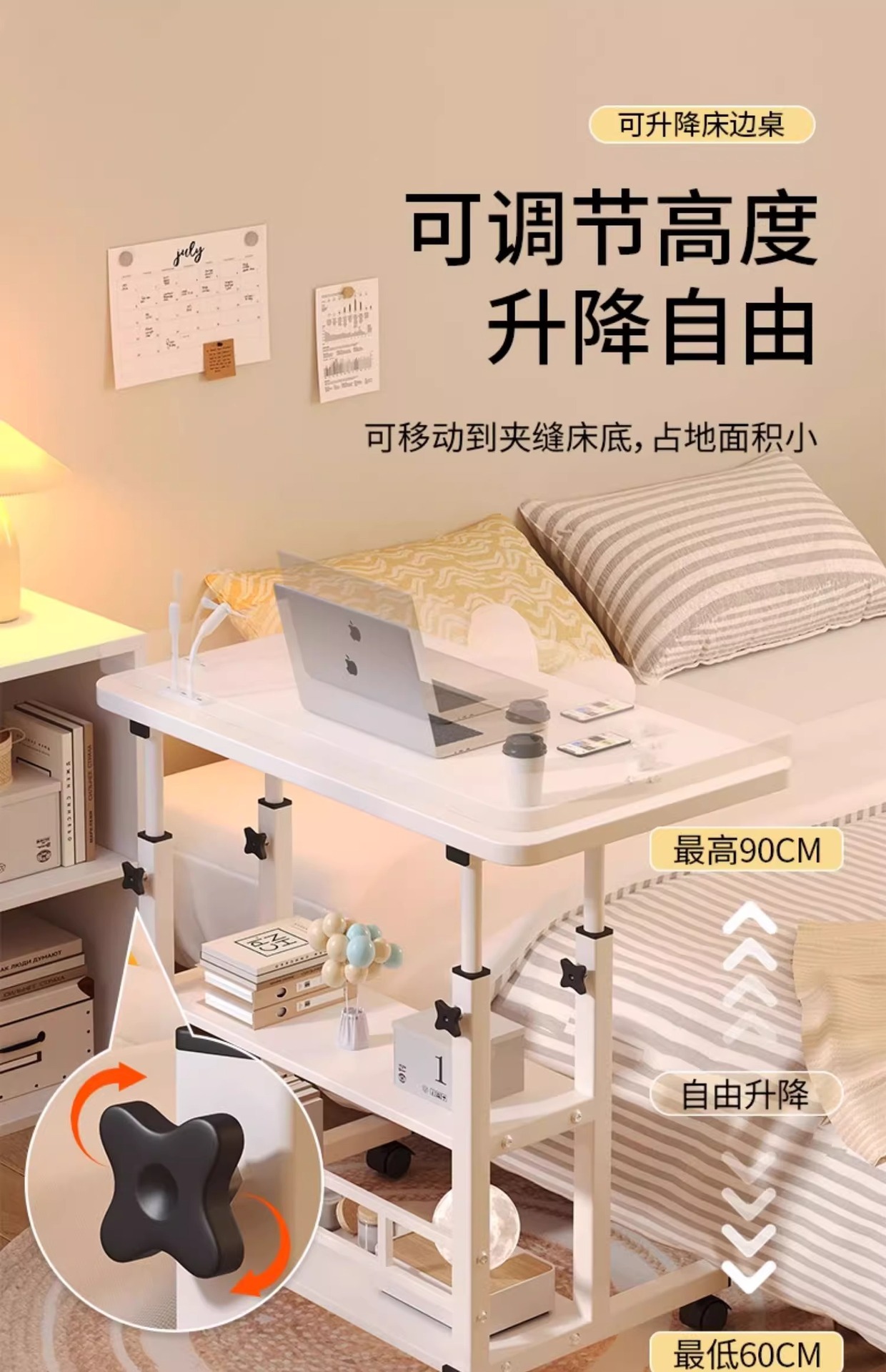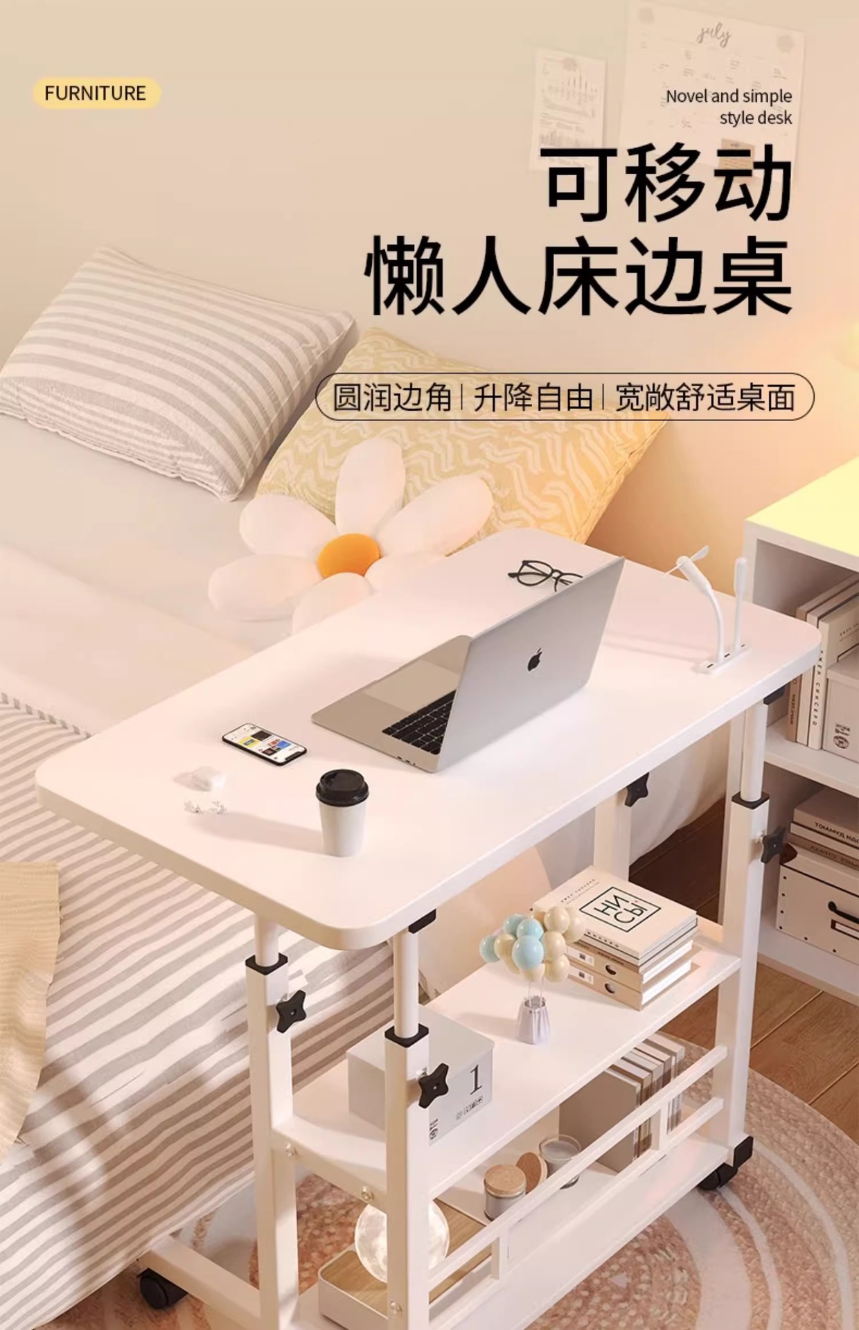 Прикроватная тумбочка портативный простой маленький столик спальня дом студенческий стол простой подъемный общежитие ленивый компьютерный стол
