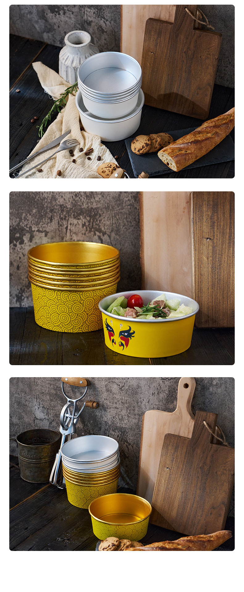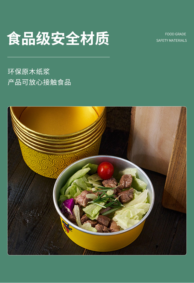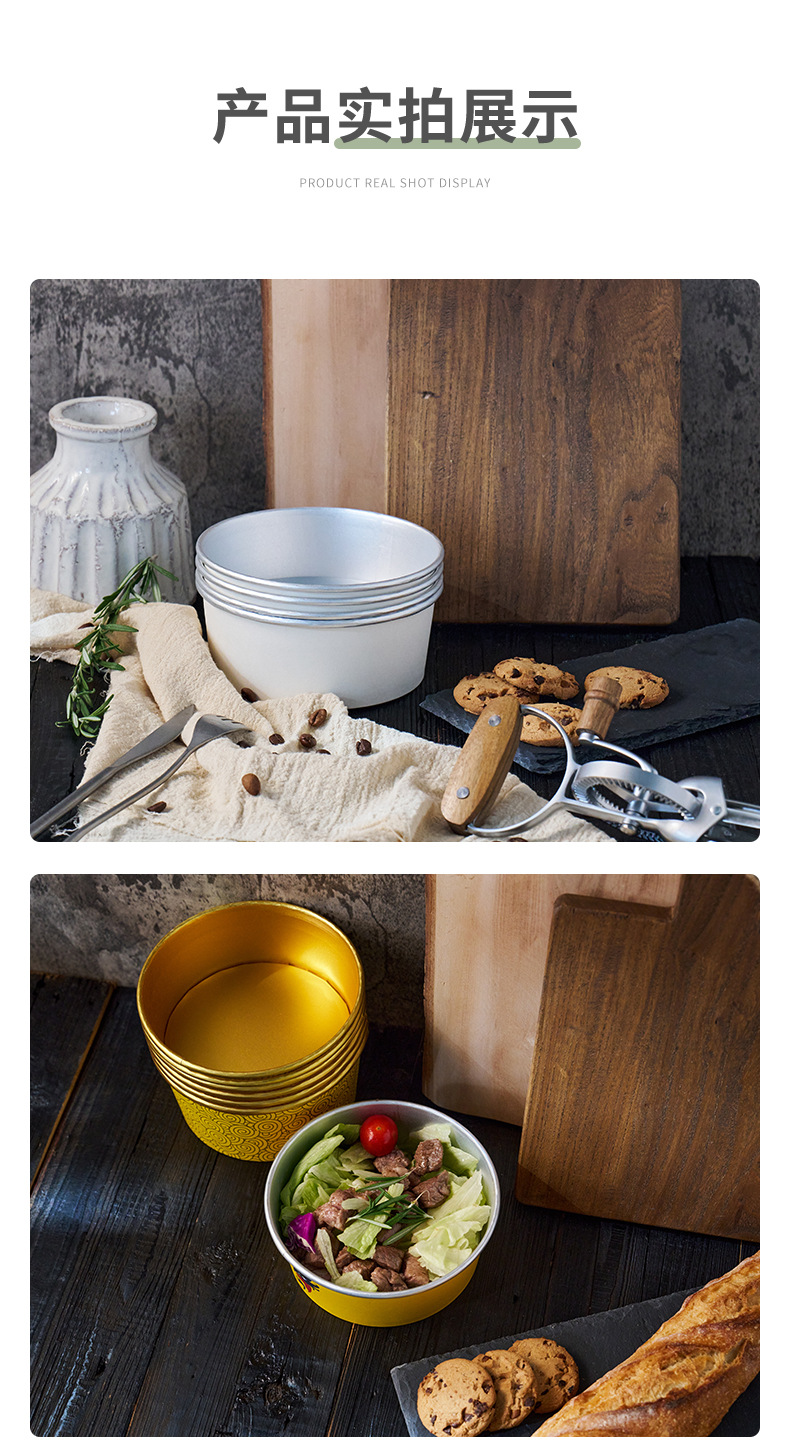 Одноразовая бумажная миска, пищевая бумага, миска из алюминиевой фольги, круглая миска для упаковки на вынос, устойчивая к высоким температурам, бумажная миска из золотой фольги, может быть изготовлена по индивидуальному заказу