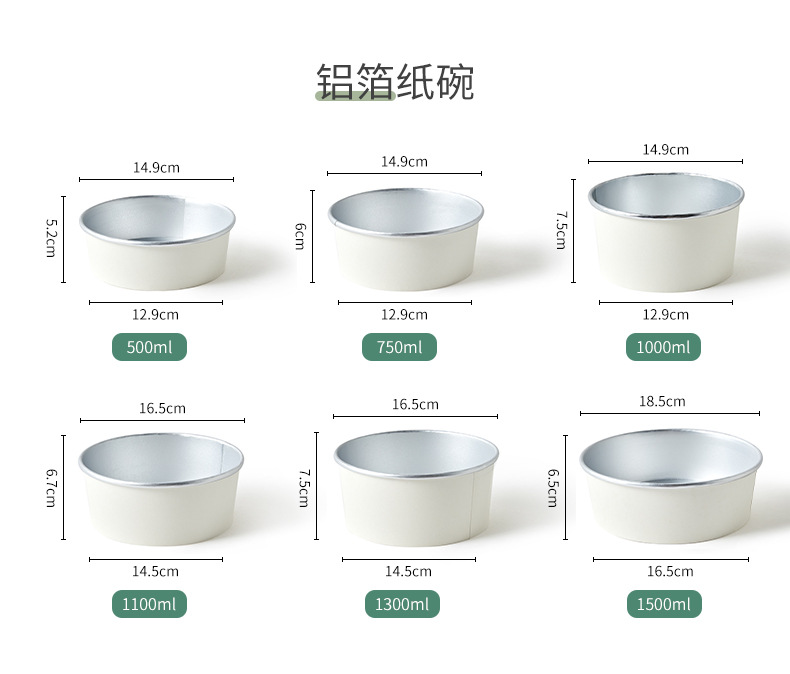 Чаша из алюминиевой фольги объемом 500 мл — закройте и опустите.; Бумажная миска из алюминиевой фольги емкостью 750 мл — закройте и опустите.; Чаша из алюминиевой фольги емкостью 1000 мл — закройте и опустите.; Миска из алюминиевой фольги емкостью 1100 мл — закройте и опустите.; Бумажная миска из алюминиевой фольги емкостью 1300 мл — закройте и опустите.; Бумажная миска из алюминиевой фольги емкостью 1500 мл — закройте и опустите.; Пластиковая крышка 150 — подходит для бумажных мисок емкостью 500/750/1000 мл.; Пластиковая крышка 165 — подходит для бумажной миски емкостью 1100/1300 мл.; Пластиковая крышка 185 — подходит для бумажной миски объемом 1500 мл.