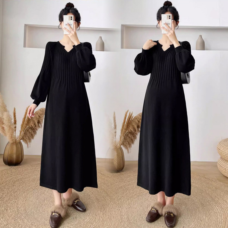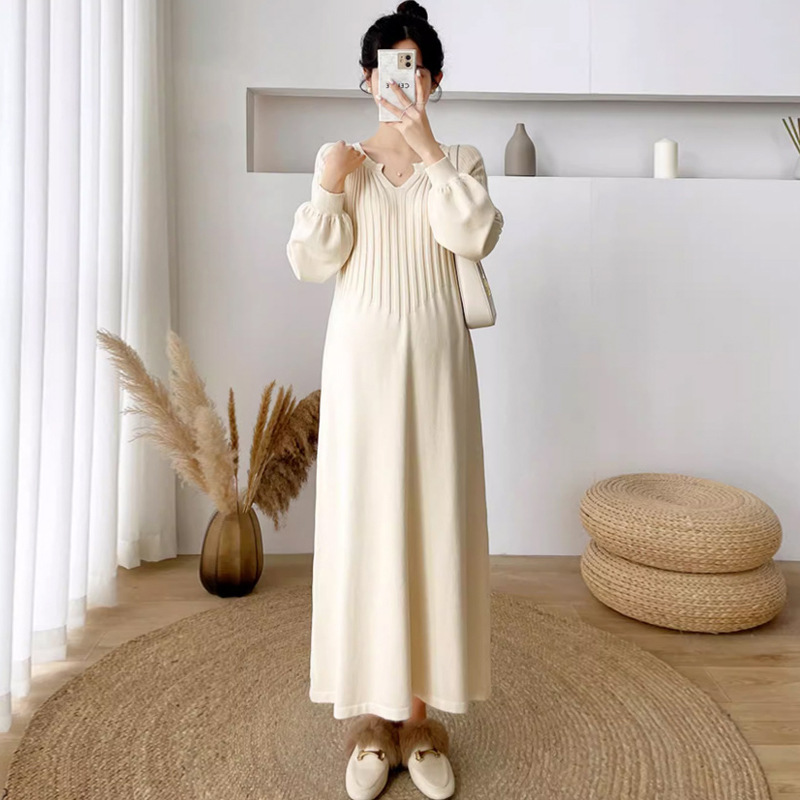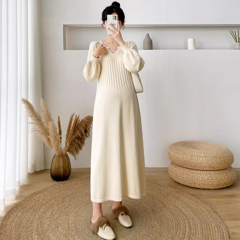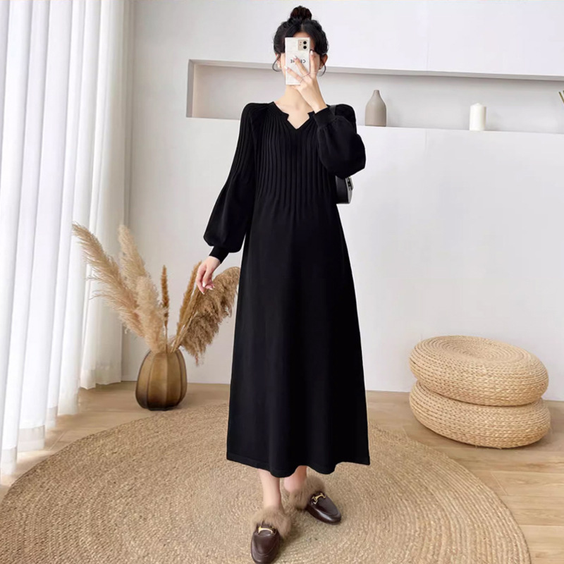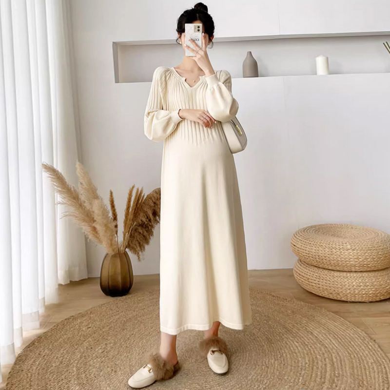 Платье для беременных, осень и зима, НОВАЯ Трикотажная длинная Высококачественная юбка с маленьким дном, настоящий выстрел в наличии
