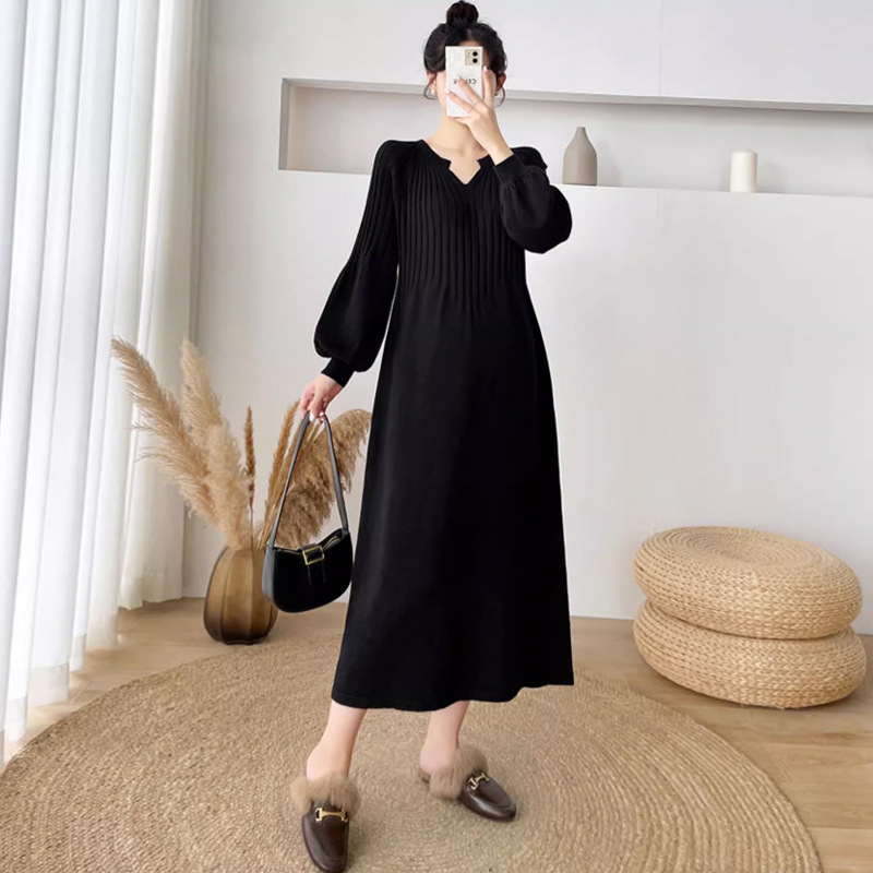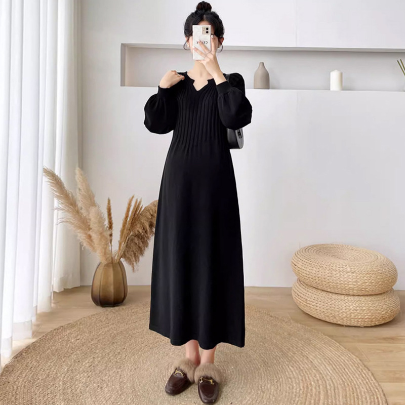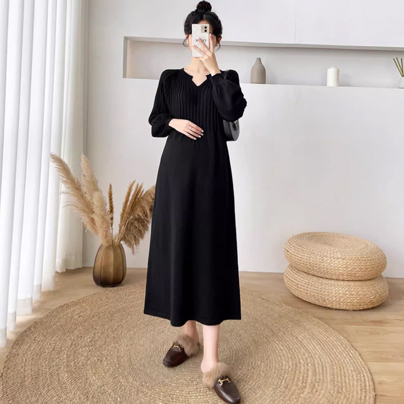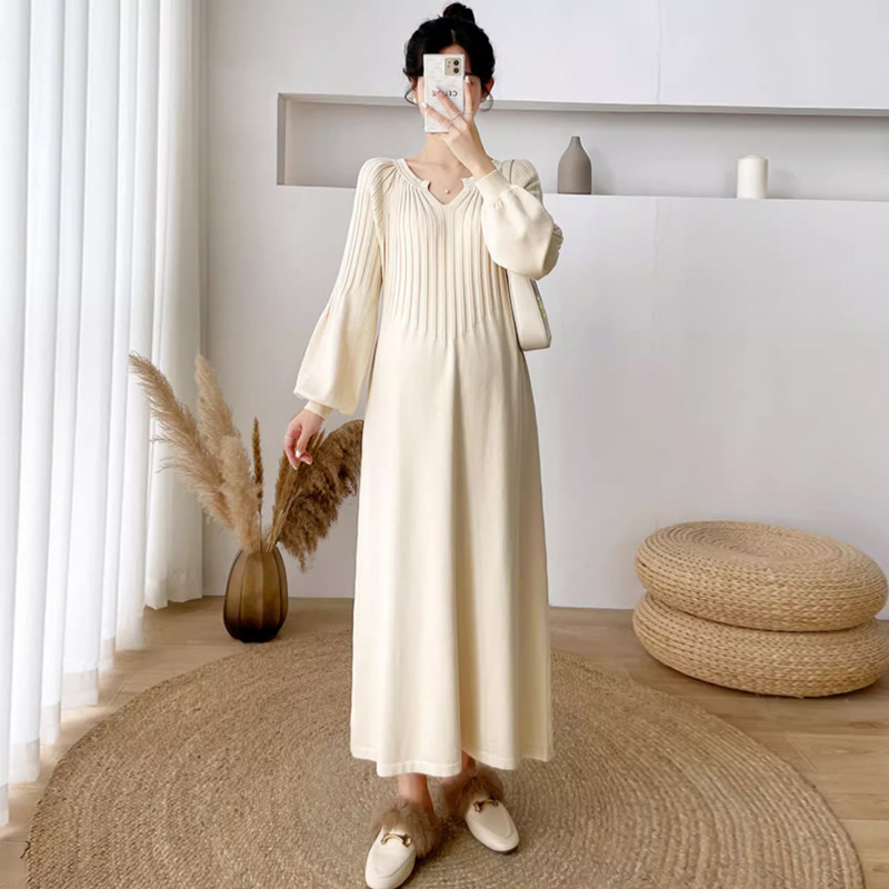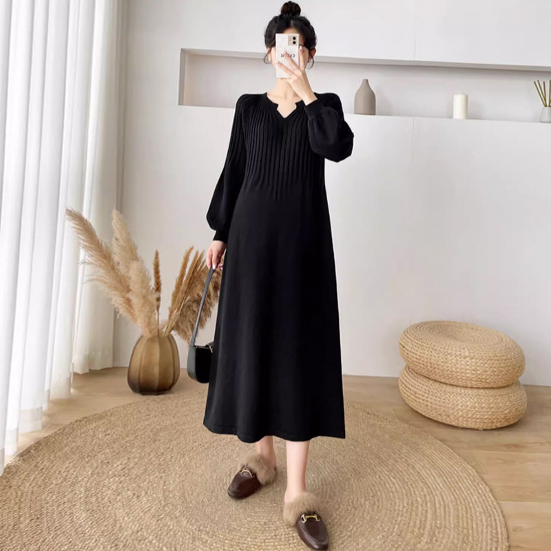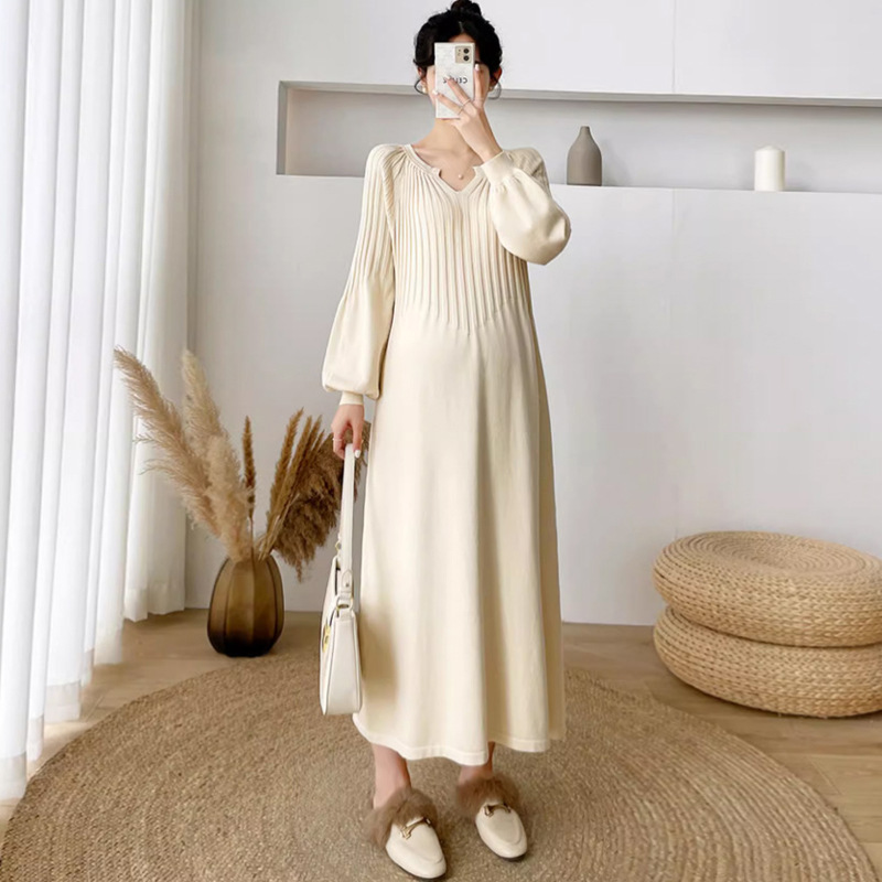 Платье для беременных, осень и зима, НОВАЯ Трикотажная длинная Высококачественная юбка с маленьким дном, настоящий выстрел в наличии