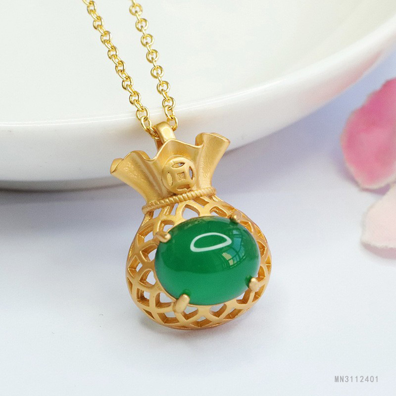 Yiyu пудра халцедон зеленый агат денежный мешок ожерелье ожерелье национальный ветер фабрика оптовая продажа MN3112401