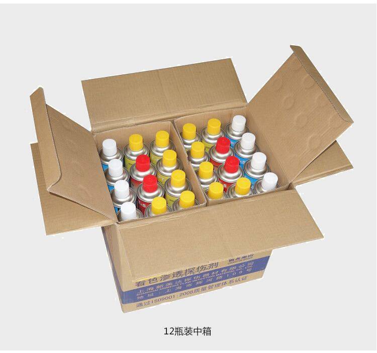 着色渗透探伤剂可用水去除,因而检测成本低,特别适用于原材料及大型构件较粗糙表面的探伤,其探伤灵敏度可达到2级(中级)。本产品适用于化工、造船、铁路、石油、重型机械、冶金、军工、压力容器等部门对表面较粗糙、探伤灵敏度要求为2级的铸锻、板、棒等金属原材料、大型零件及结构的渗透探伤。