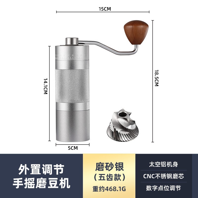 Ручная кофемолка для зерен, портативная кофемолка для эспрессо с ручным приводом, портативная кофемолка с шлифовальным элементом из стали с ЧПУ