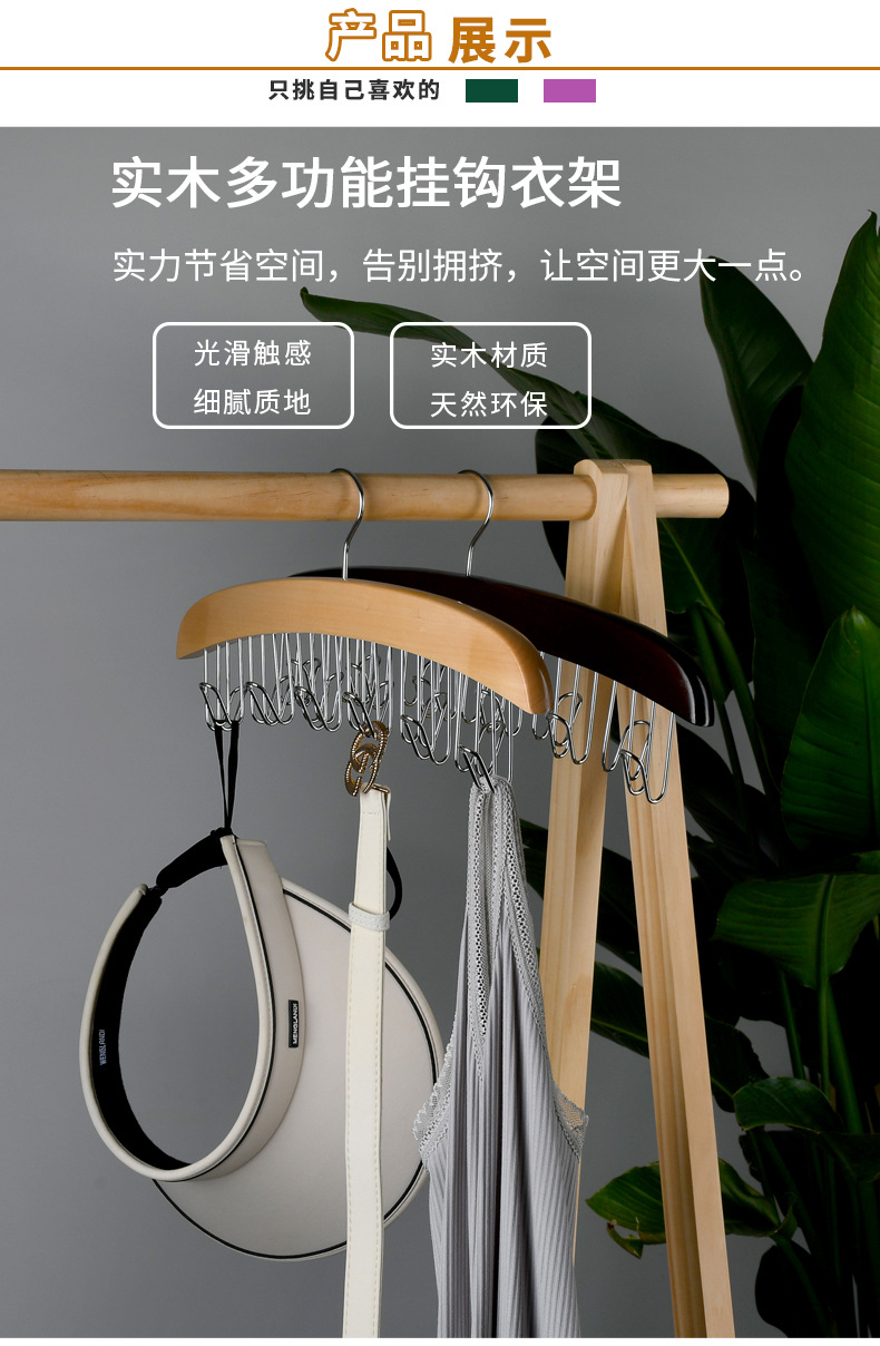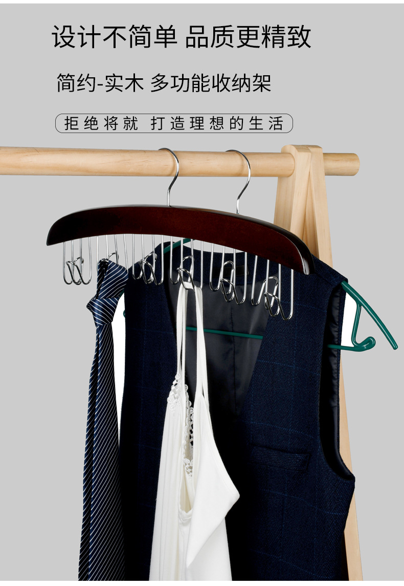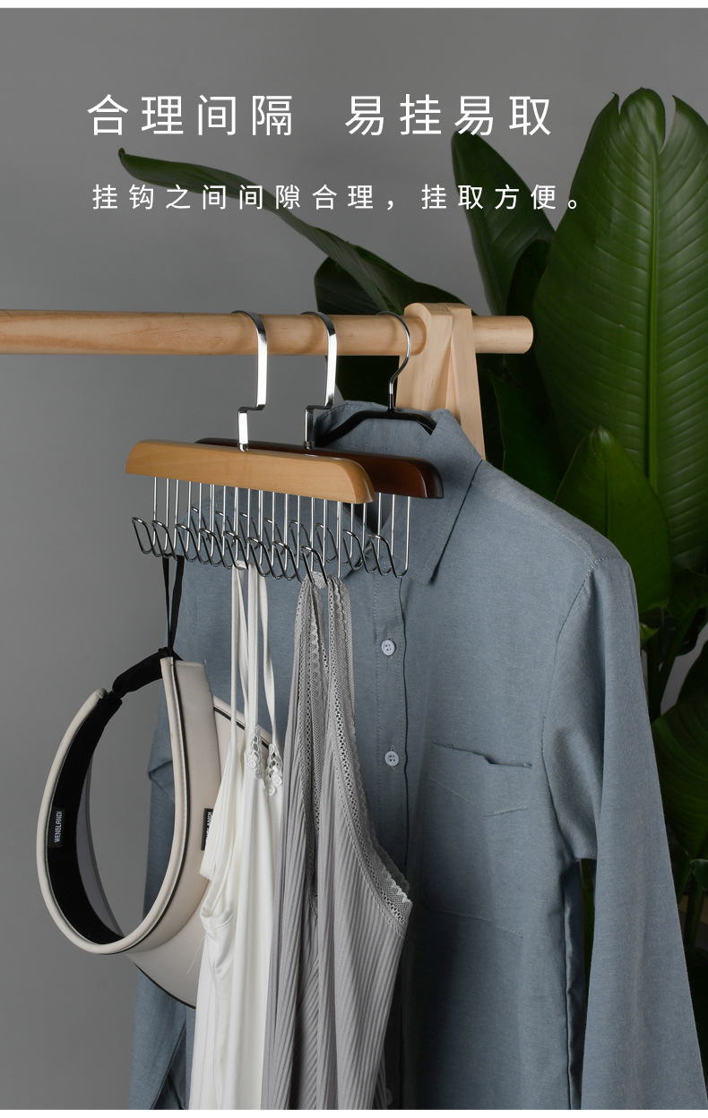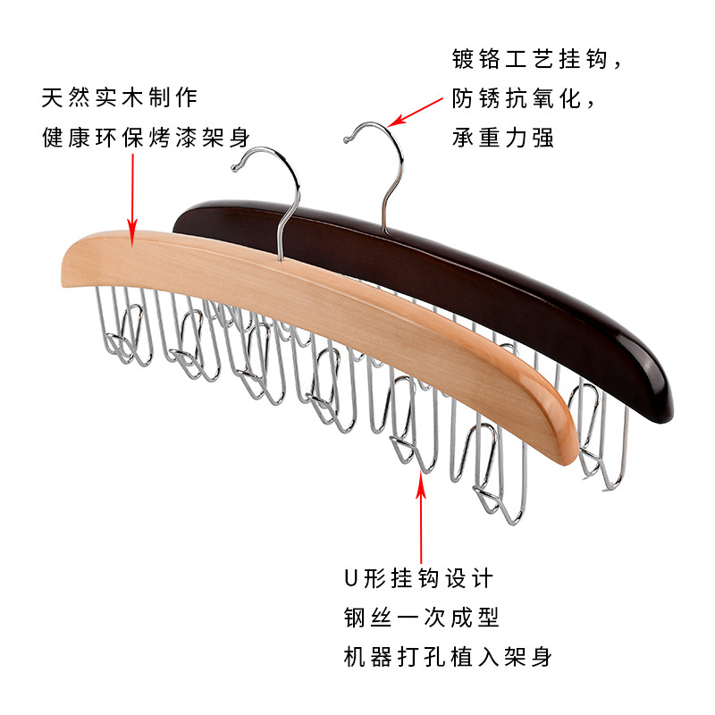 Многофункциональный органайзер для хранения нижнего белья и жилетов из массива дерева с волнообразными деревянными крючками для дома и общежития.