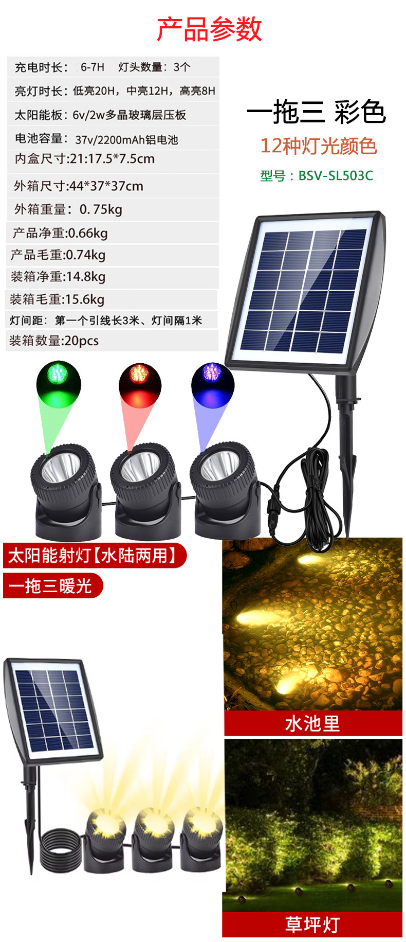 太阳能板到第一个灯3米,灯间距1米