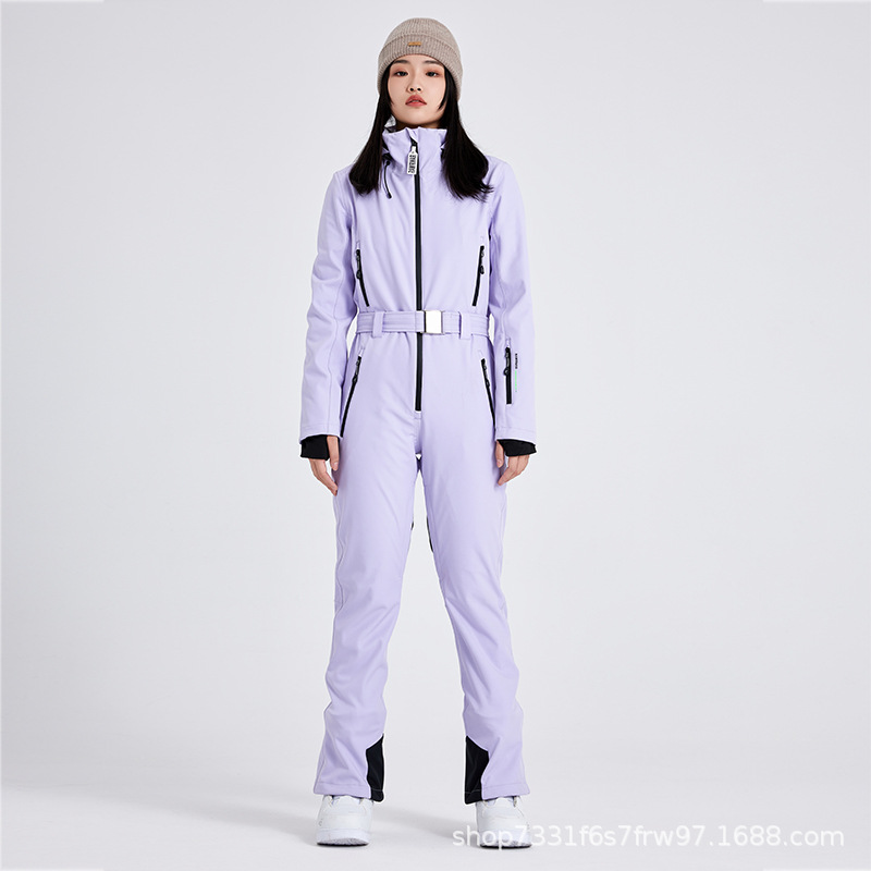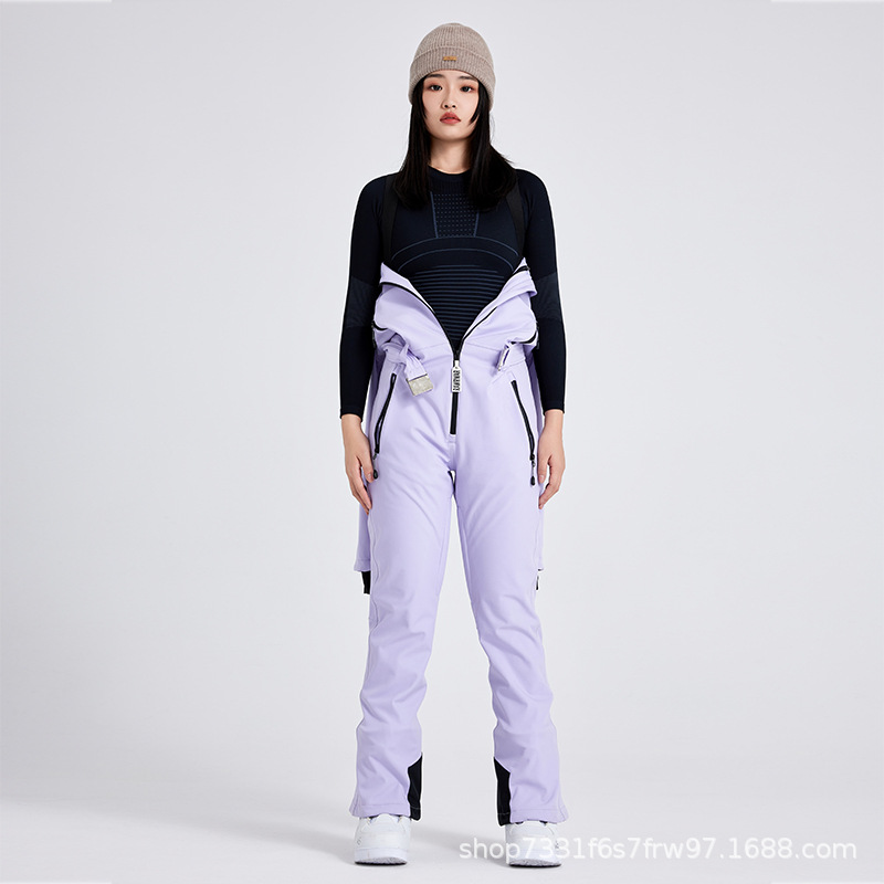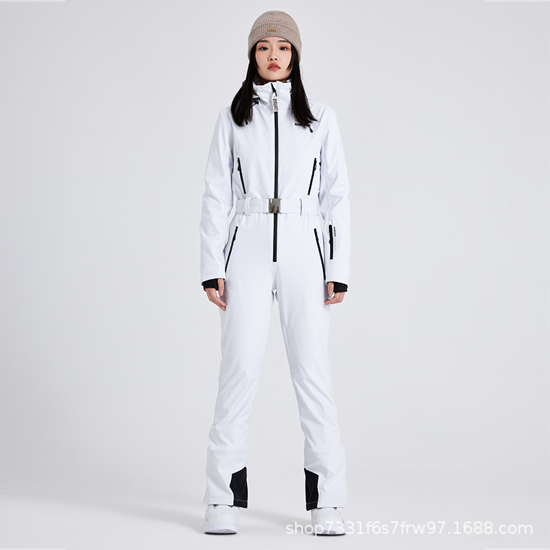 Женский цельный лыжный костюм 2023 Новый профессиональный двухбортный приталенный зимний костюм зимние штаны уличные непромокаемый флис 734