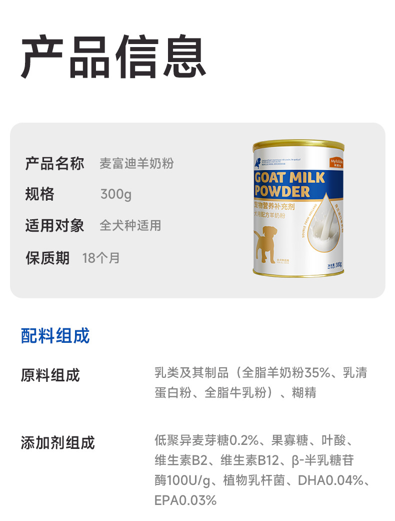 Готовый к отгрузке продукт: сухое козье молоко McFoodie для домашних животных, собак, кошек, щенков, взрослых собак, сухое кошачье молоко, питательное молоко для укрепления иммунитета.