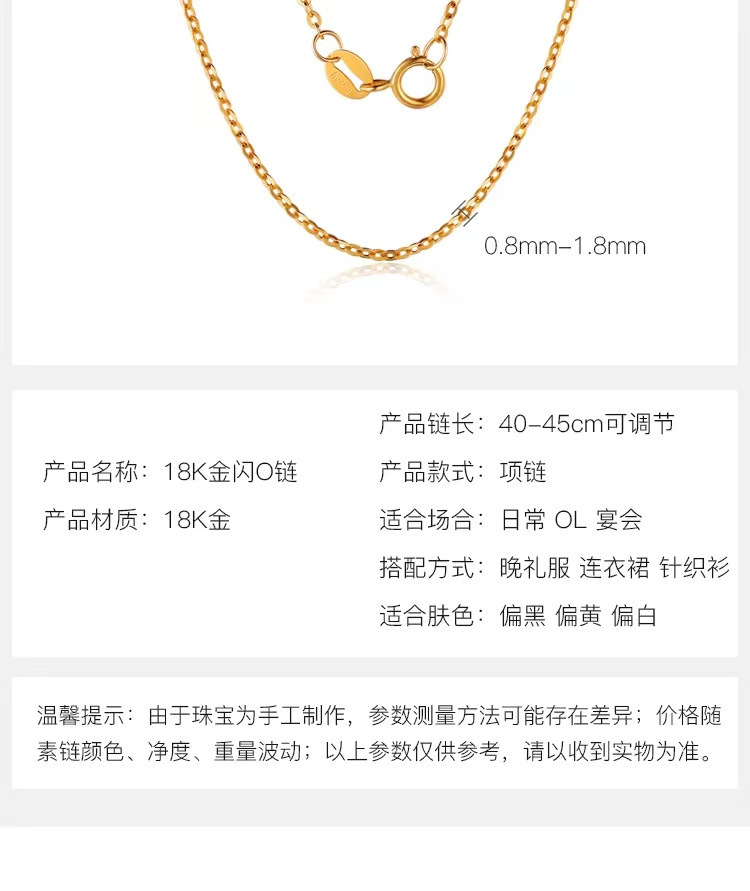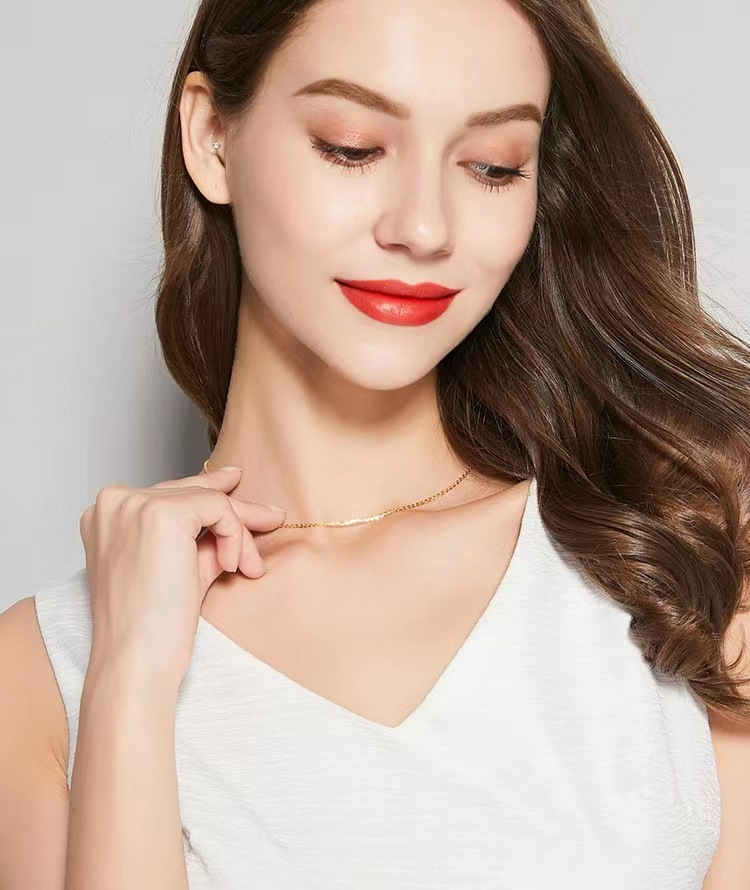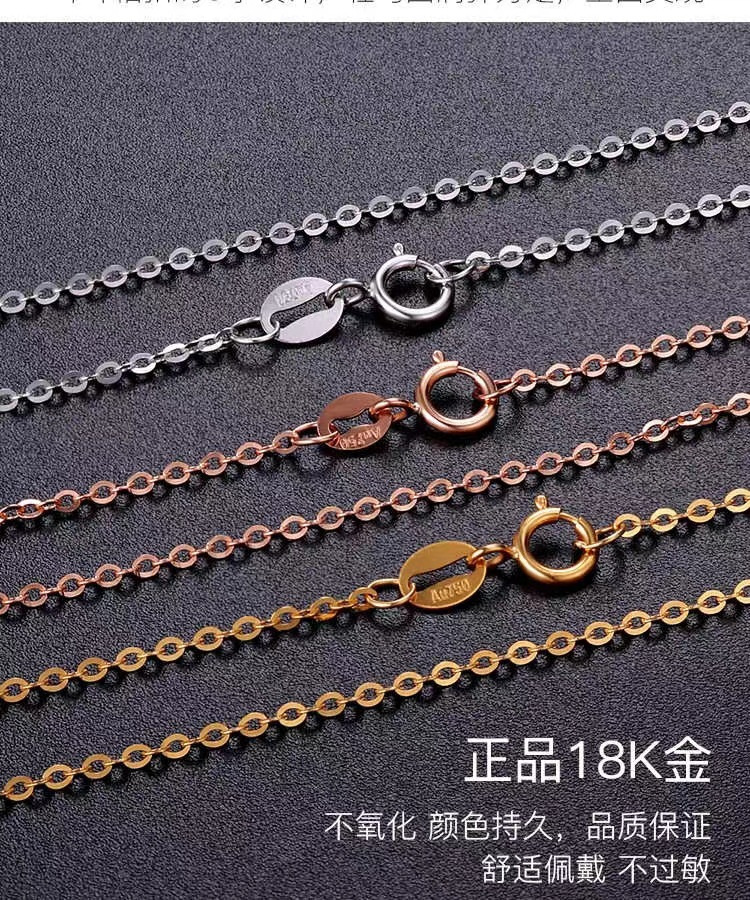 Оптовая продажа женского золотого колье 18к, регулируемая, AU750, цветное золото, блестящая цепочка, розовое золото, простая цепочка, подарок для прямой трансляции