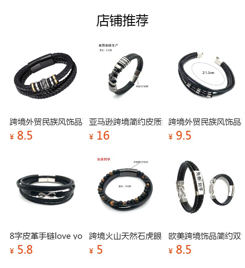 Европейская и американская электронная коммерция, хит продаж, ювелирные изделия, 8-образный кожаный браслет, мужской браслет из воловьей кожи с замком черной краски