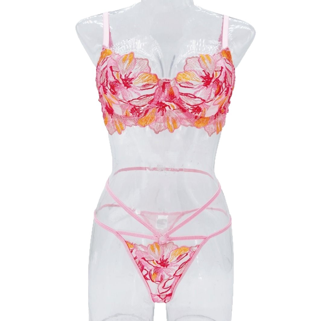 Комплект нижнего белья Kajano: трансграничный европейско-американский кружевной комплект с вышивкой, разноцветный, полупрозрачный, сексуальный комплект нижнего белья для женщин.