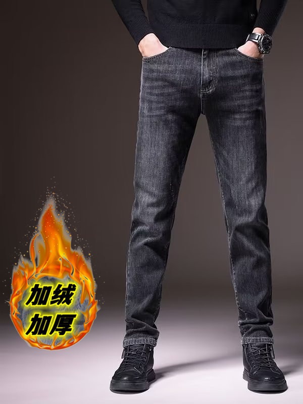 Экспорт внешней торговли, Мужская одежда, осенне-зимние толстые джинсы на флисовой подкладке, мужские прямые тонкие эластичные брюки, Высококачественная ретро-мода