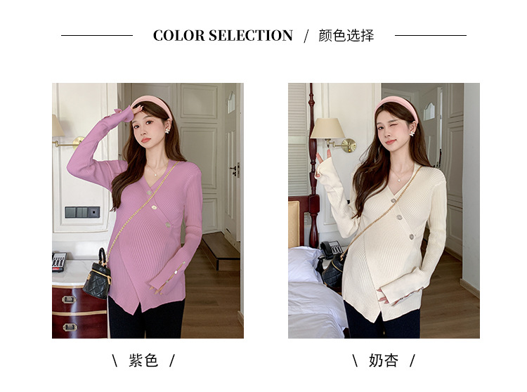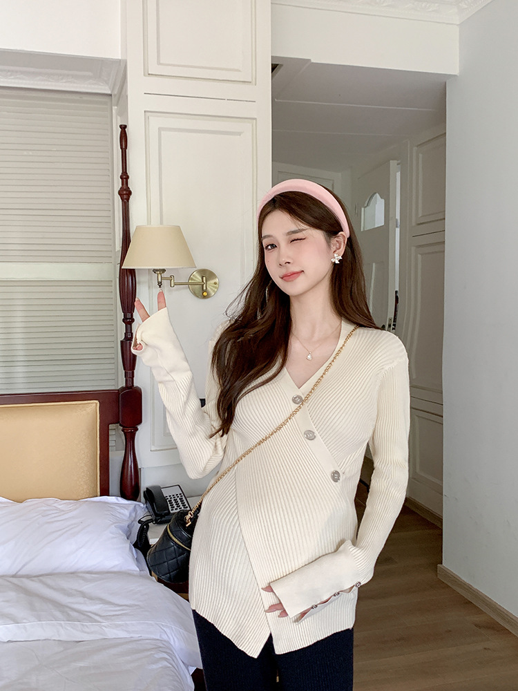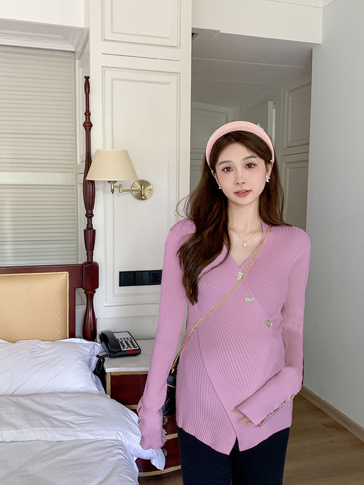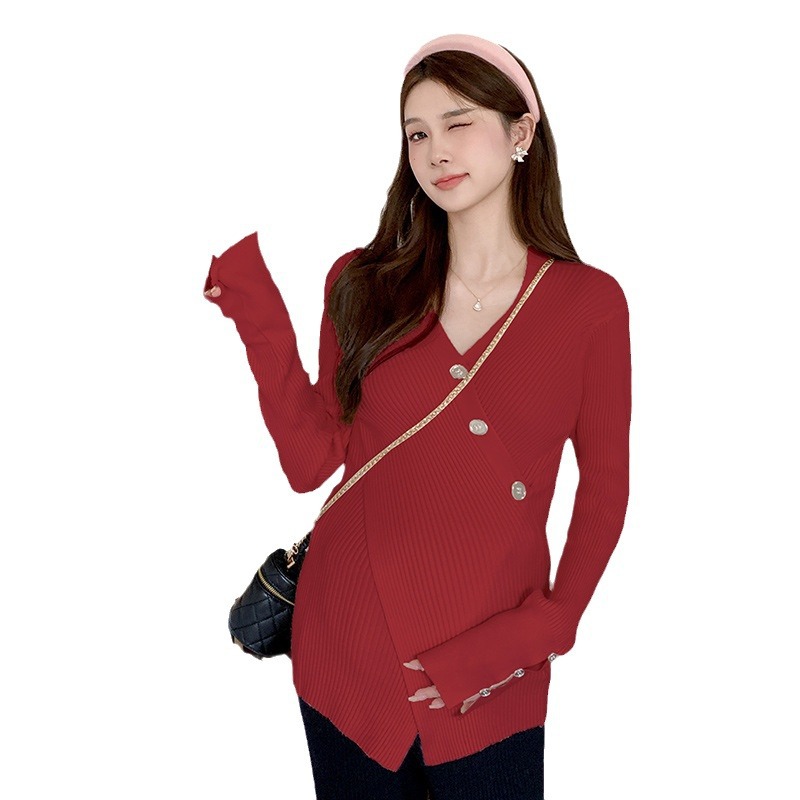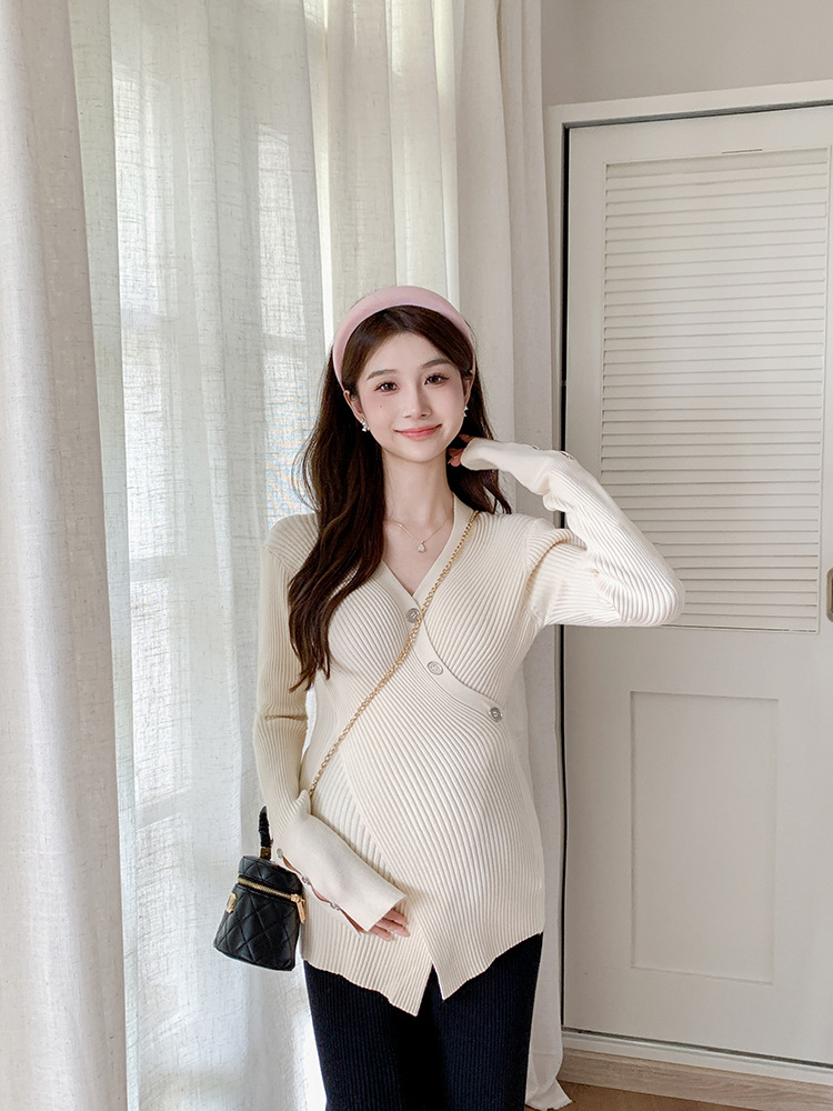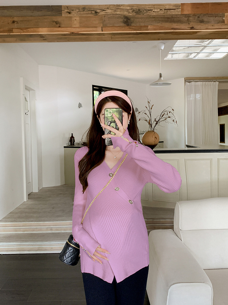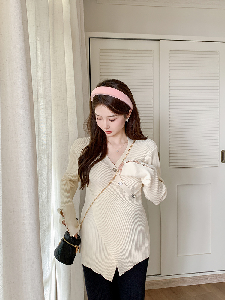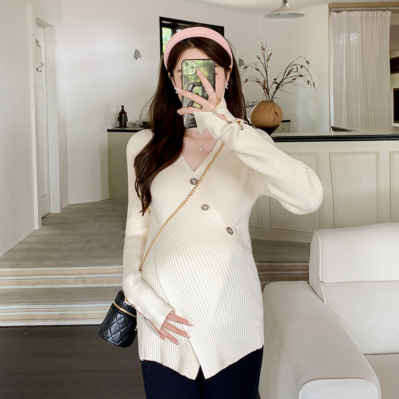 Рубашка для беременных, осенне-зимний вязаный свитер с перекрестом внутри, топ с длинными рукавами, женский маленький свободный модный свитер