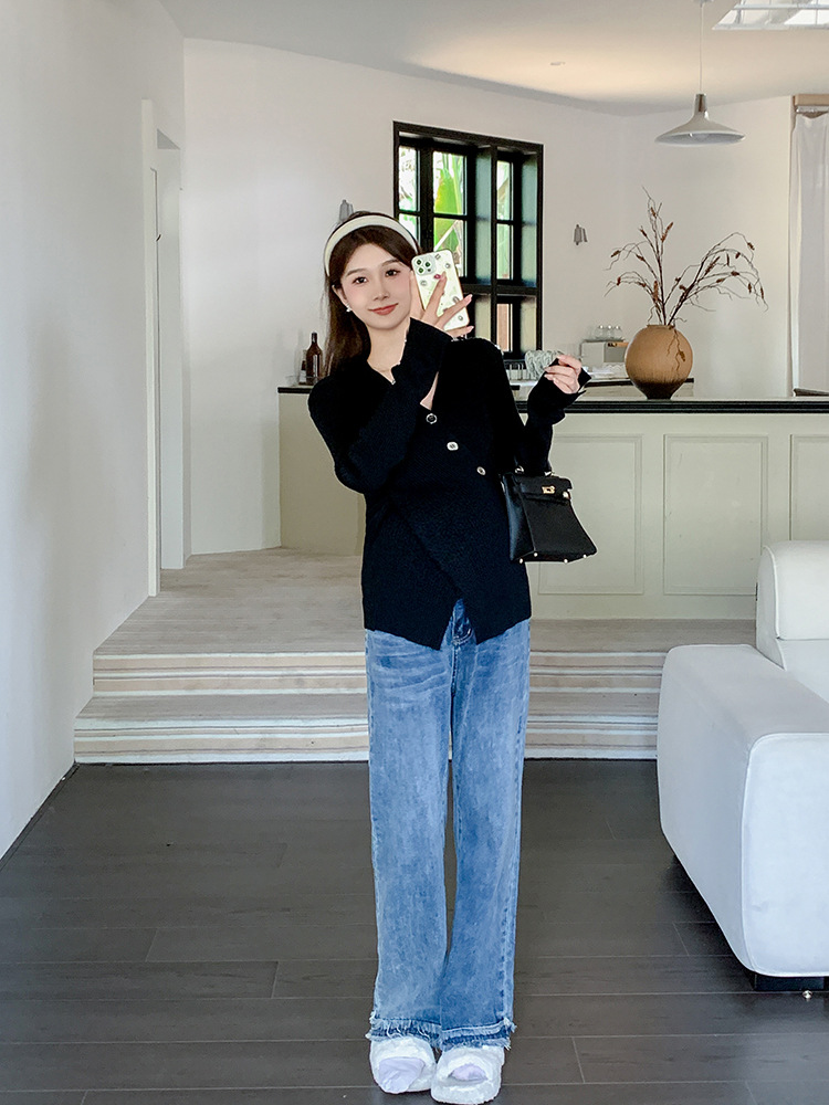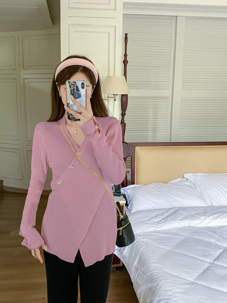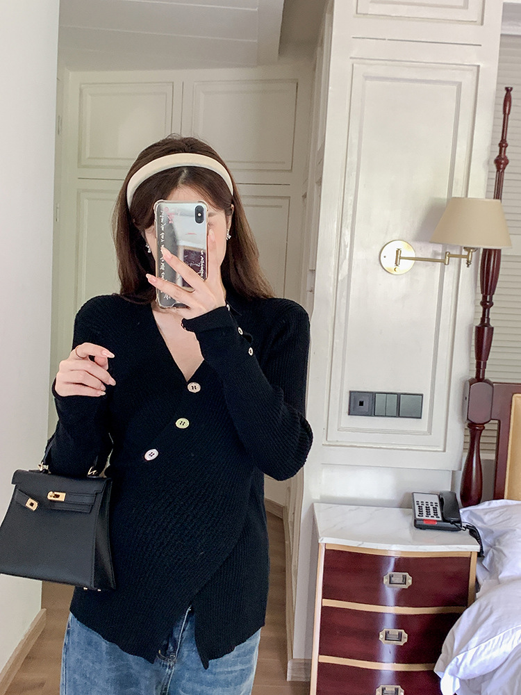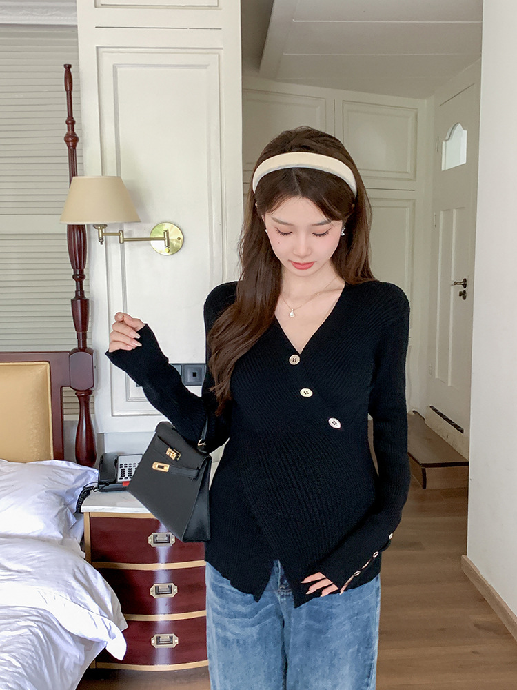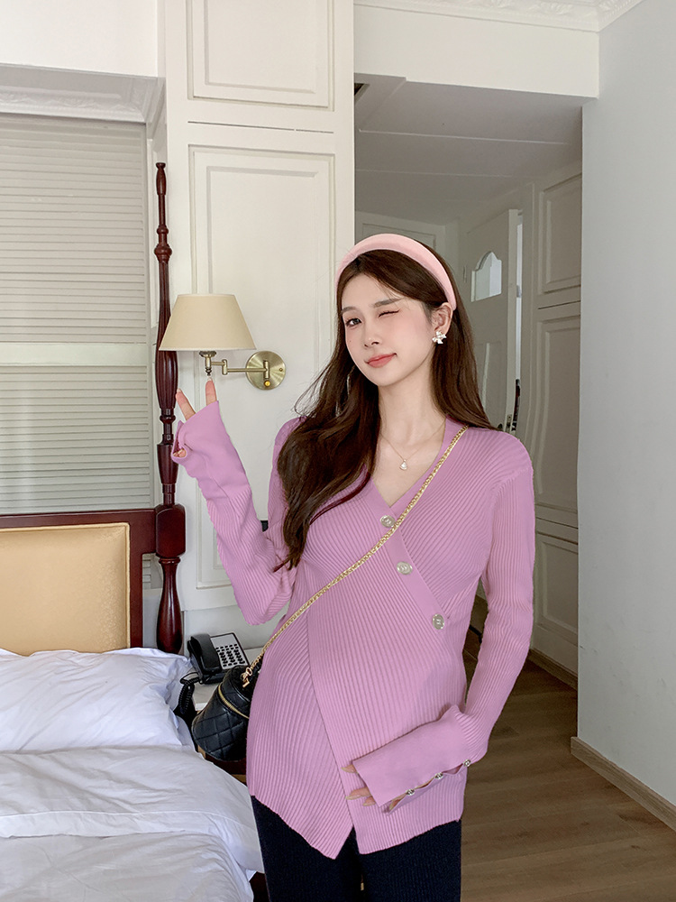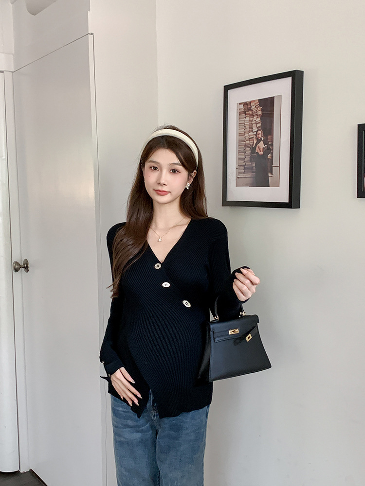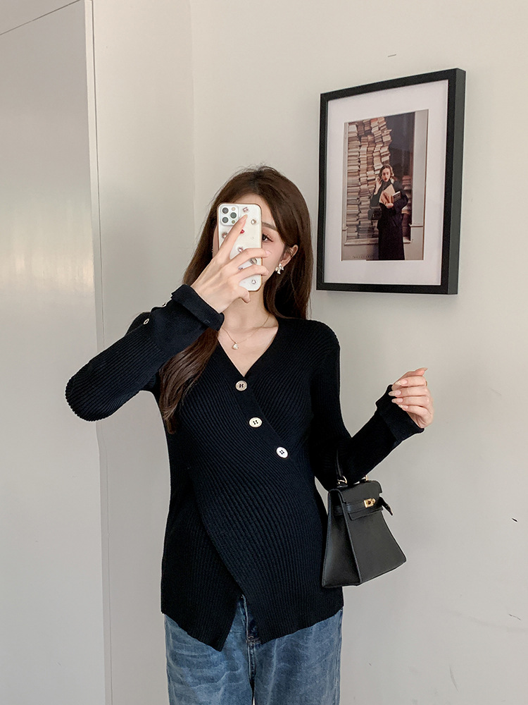 Рубашка для беременных, осенне-зимний вязаный свитер с перекрестом внутри, топ с длинными рукавами, женский маленький свободный модный свитер