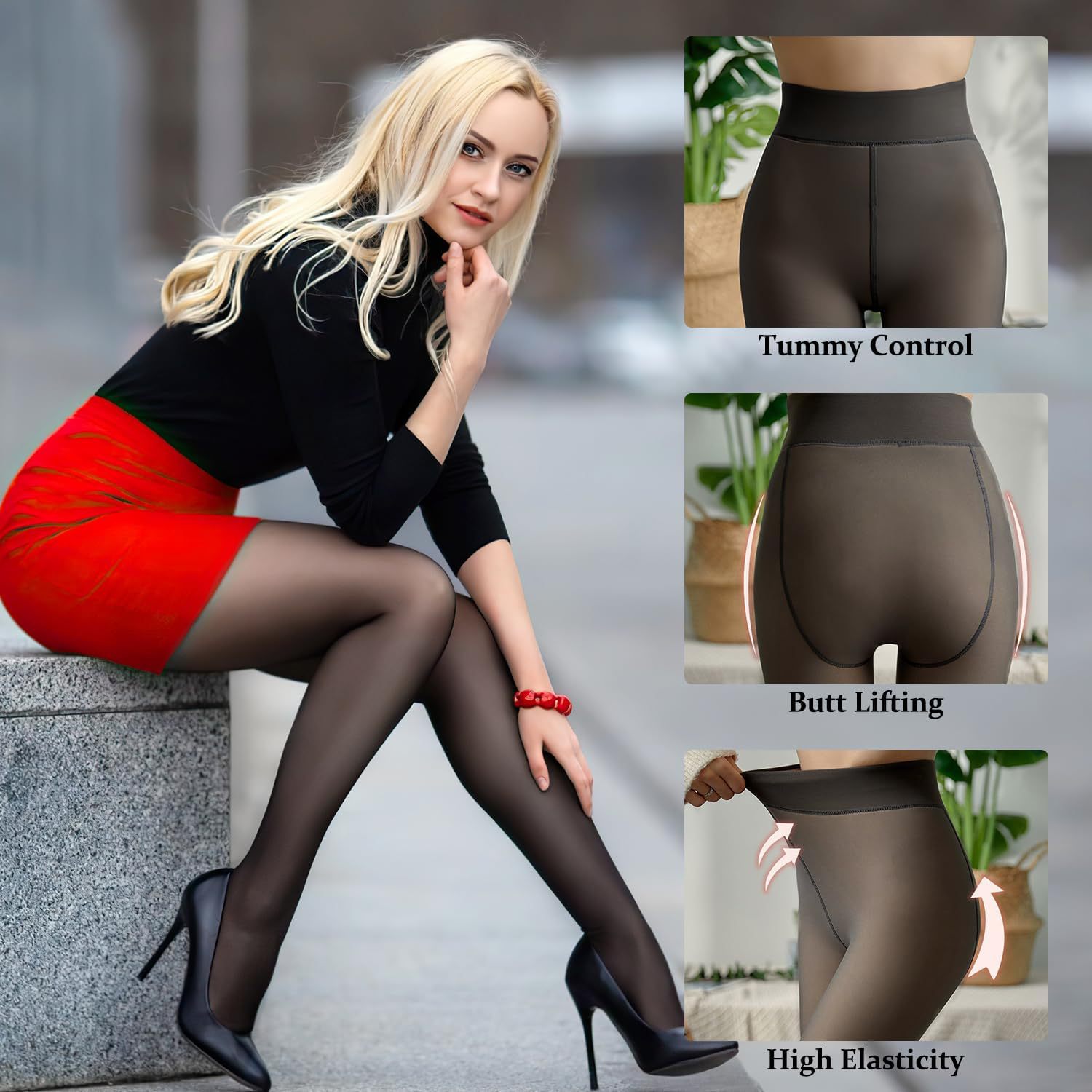 Комплект из 2 пар теплых леггинсов больших размеров для осени и зимы: черные на флисовой подкладке, очень толстые, с эффектом полупрозрачности, серые, для стюардесс, с имитацией кружевного узора.