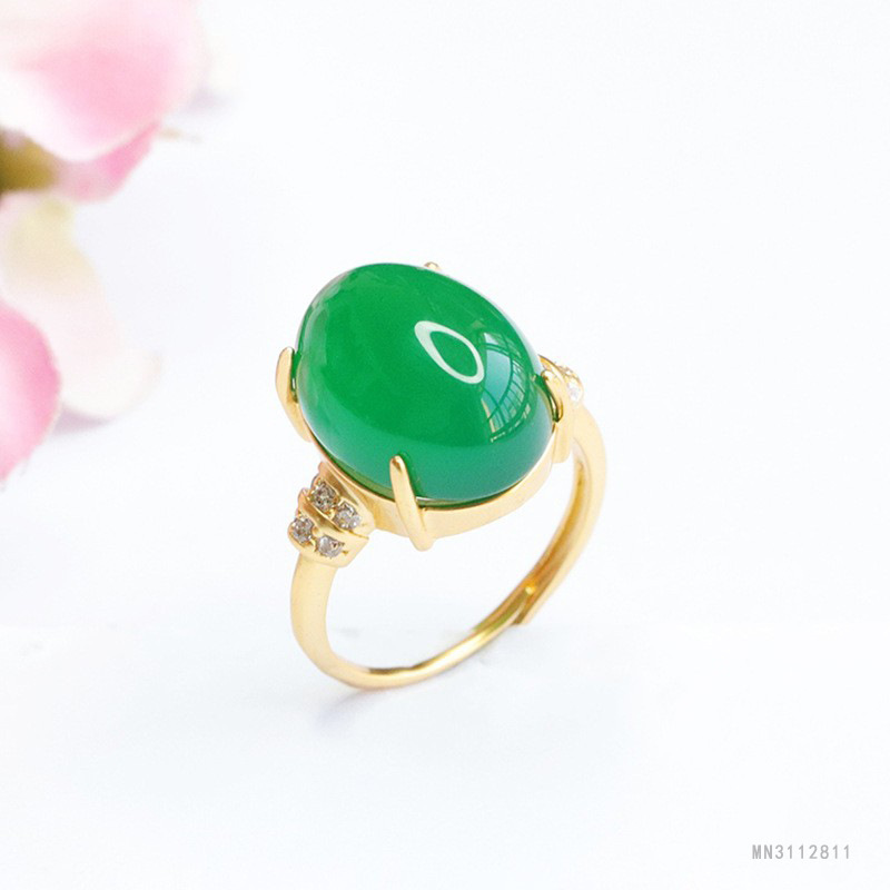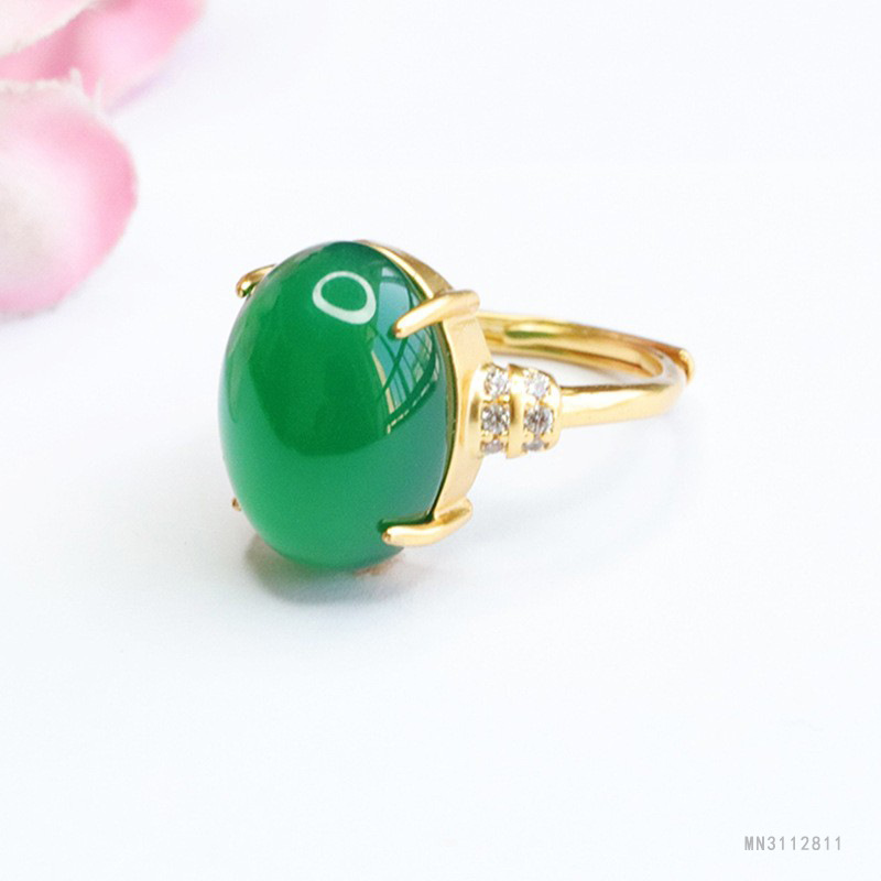 Кольцо из халцедона «Ледяной зеленый Гуань Ю», агатовое кольцо на палец, ювелирное изделие в национальном стиле, оптовая продажа и доставка от фабрики S3112811