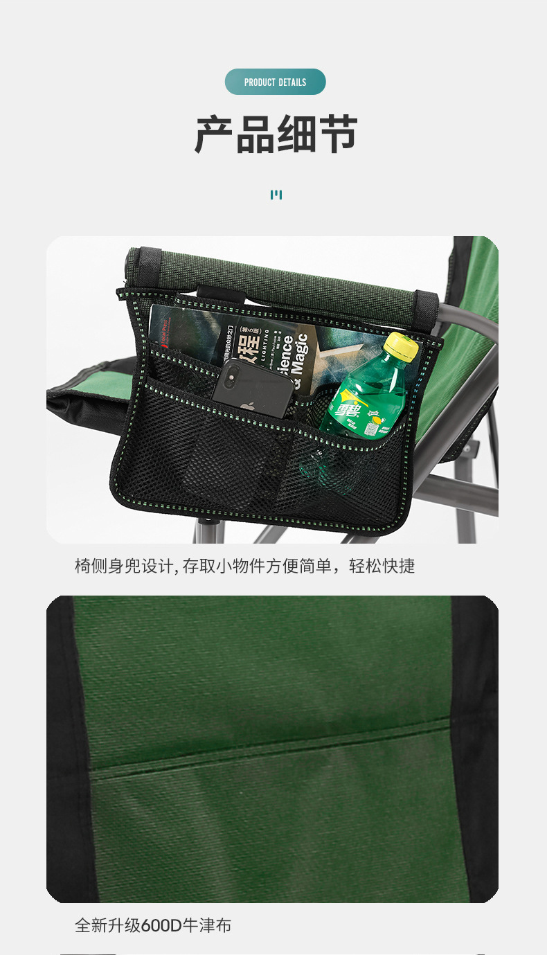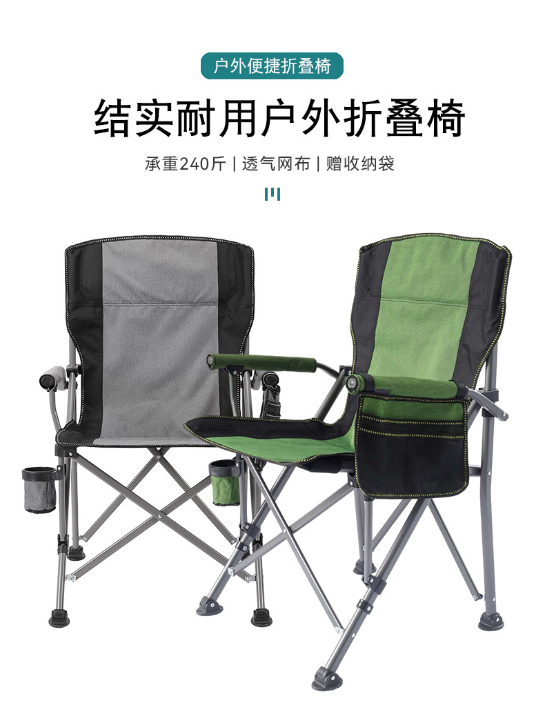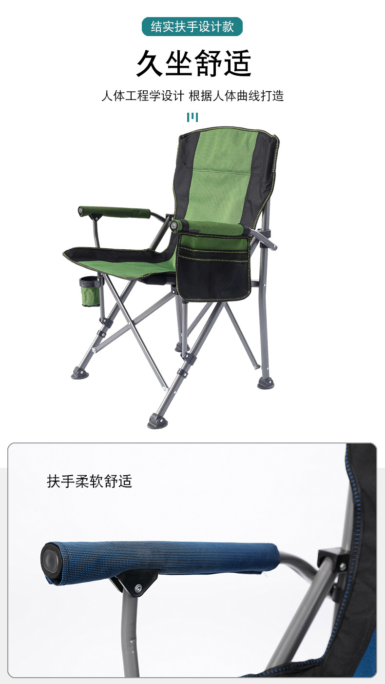 Уличный складной стул, жирная и увеличенная спинка, подлокотник, пляжный стул из искусственной кожи, портативный стул для кемпинга, режиссера, рыбалки