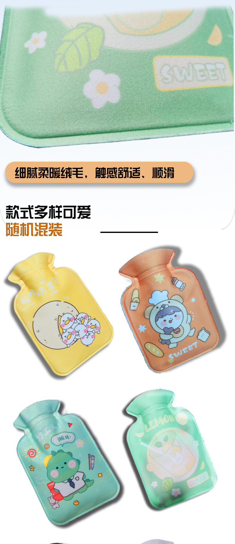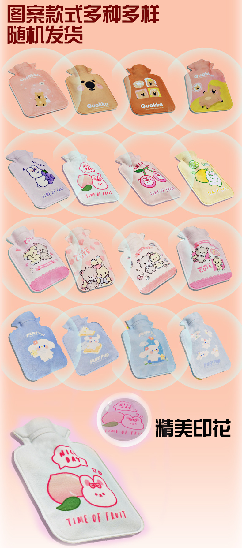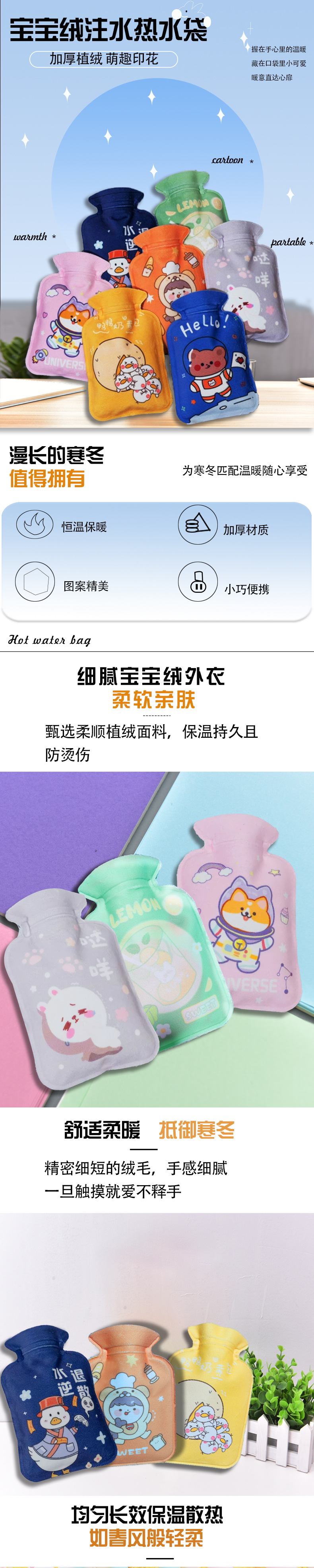 Бутылка для горячей воды с флокированной печатью (рисунок отправляется случайным образом)