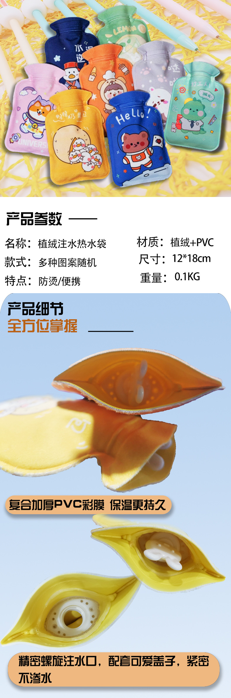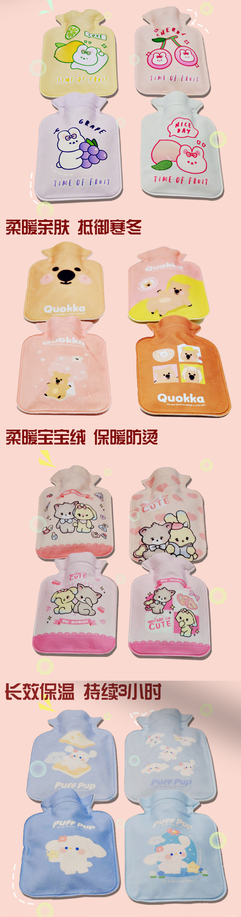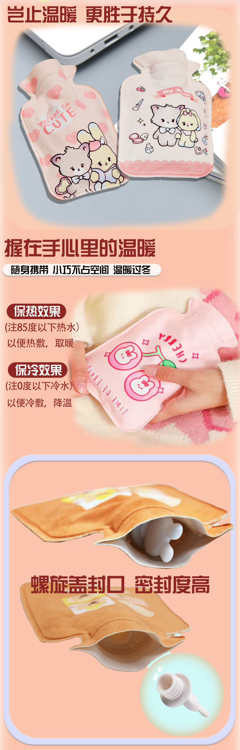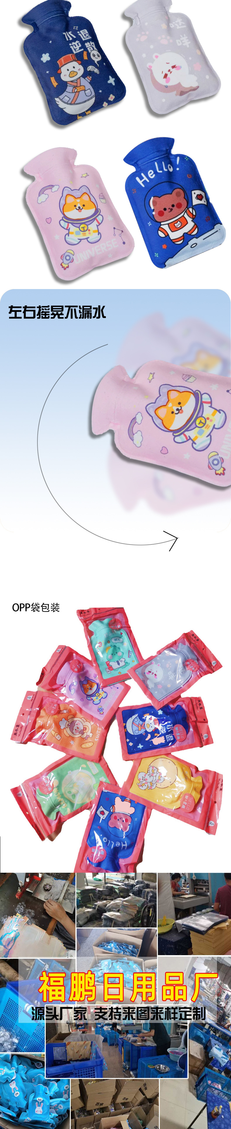 Взрывозащищенная грелка, наполненная водой, грелка для рук, милый женский горячий компресс, грелка для живота, средняя мультяшная плюшевая грелка, наполненная водой