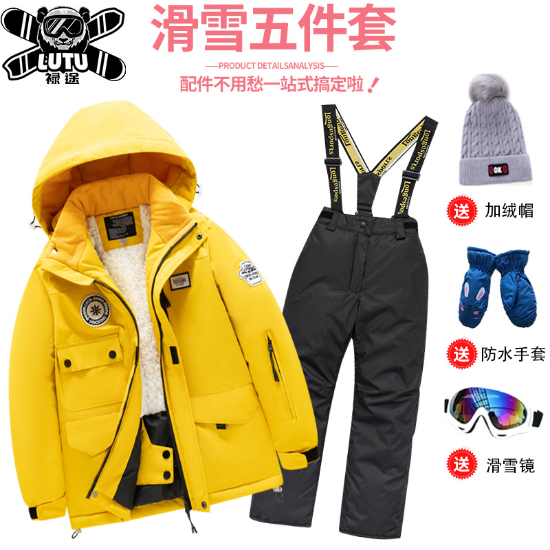 Детский лыжный костюм для мальчиков и девочек, родителей и детей, средних и больших детей, Детский горнолыжный комплект Northeast Snow Town, полный комплект