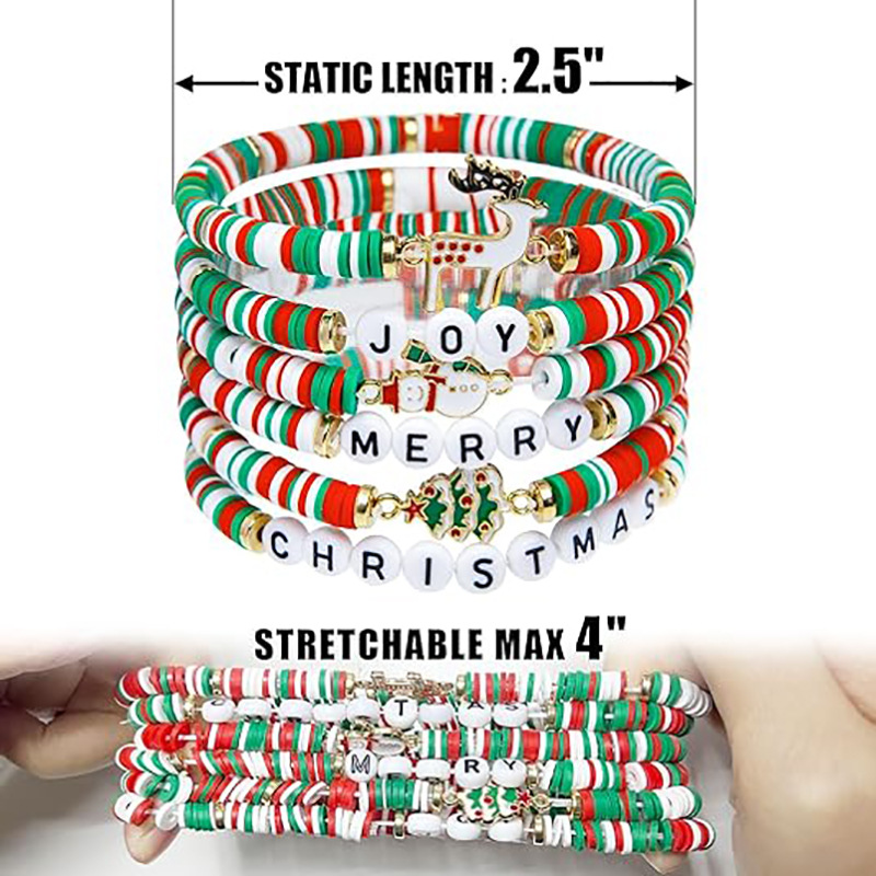 亚马逊热销2023圣诞6条可爱的圣诞软陶手镯手链女士派对礼物