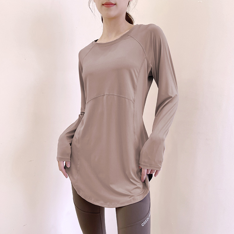 Весенняя и летняя спортивная одежда средней и длинной формы с длинными рукавами женские бедра тонкая и дышащая йога высокого качества фитнес-футболка на открытом воздухе топ