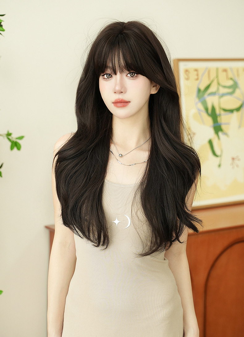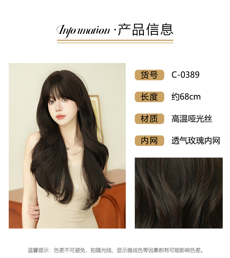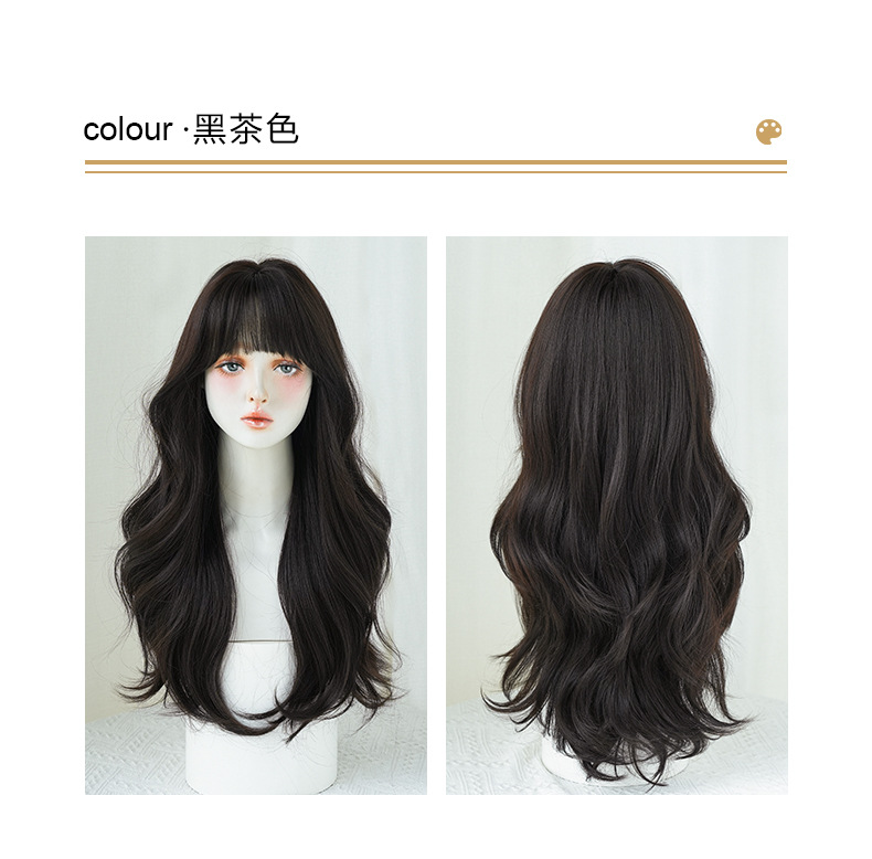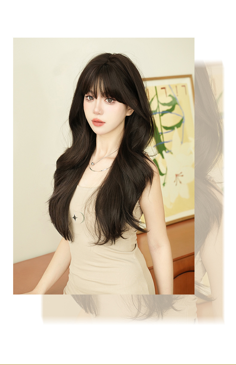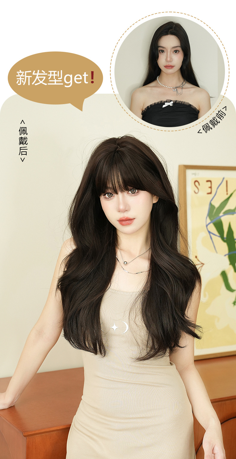 Осенне-Зимний новый парик, женские длинные вьющиеся волосы, модный натуральный полный верхний головной убор, имитация химического волокна, прямая челка, пуловер, длинные волосы