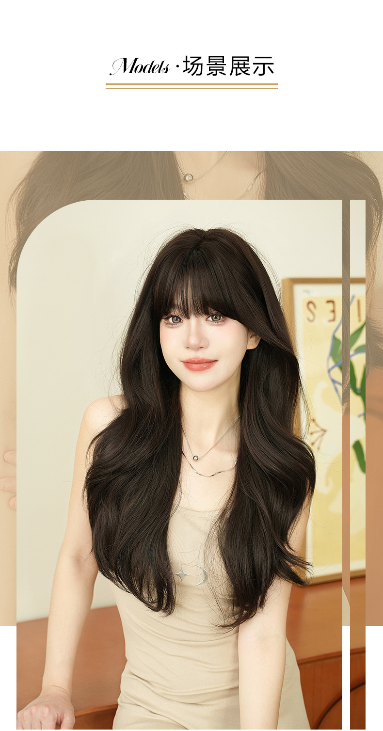 效果,模特儿配戴假发後有用手拨开再抓蓬松制造效果,假发是非常有打理空间的,有时候一顶假发可以变换出不同的效果。