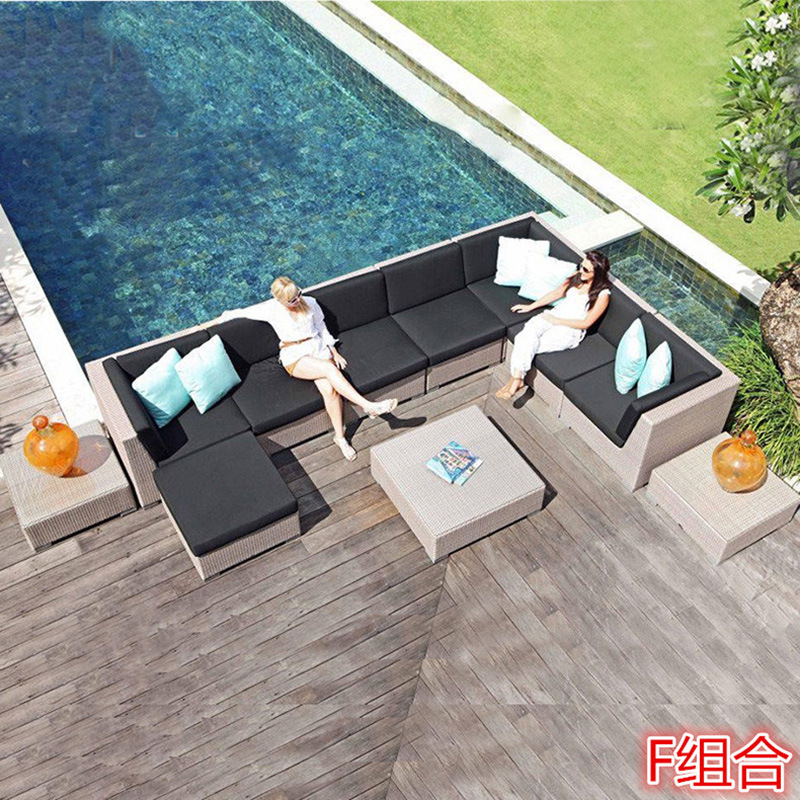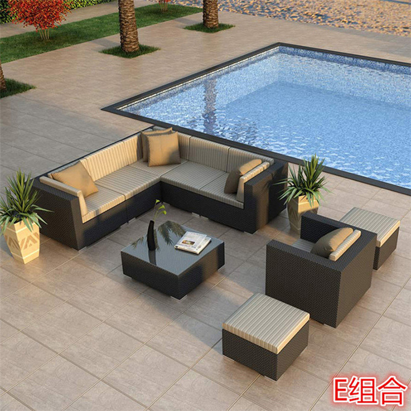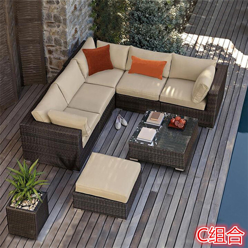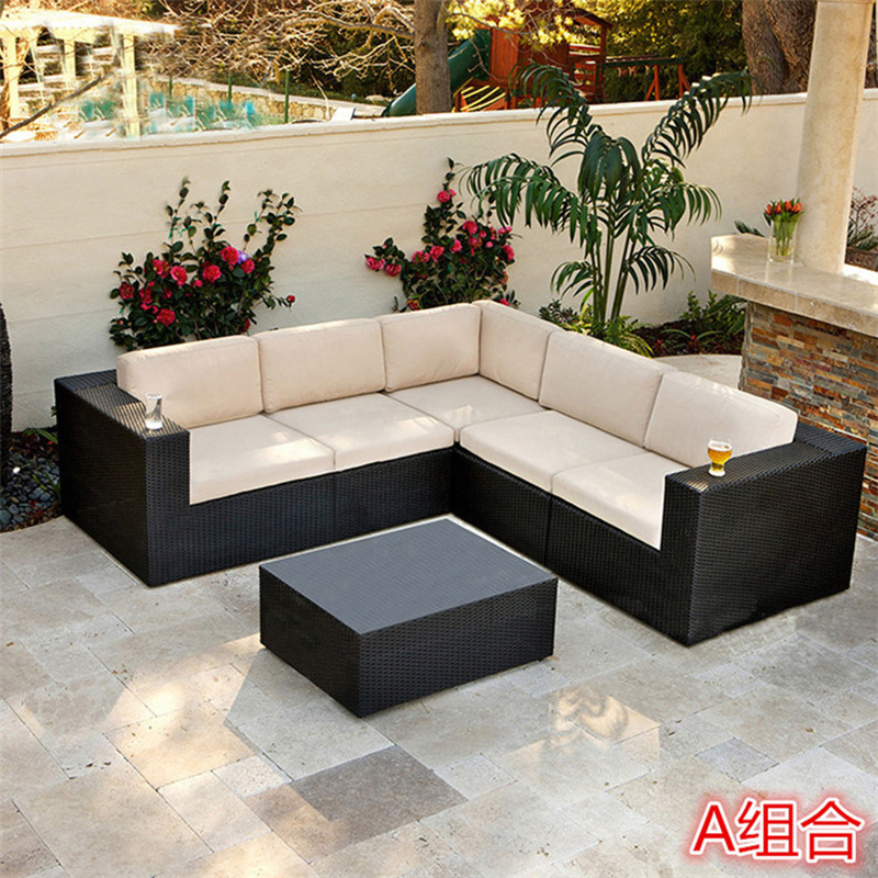 Трансграничный открытый диван из ротанга сочетание двора Защита от солнца Водонепроницаемый Отдых двойной стул из ротанга журнальный столик уличная мебель