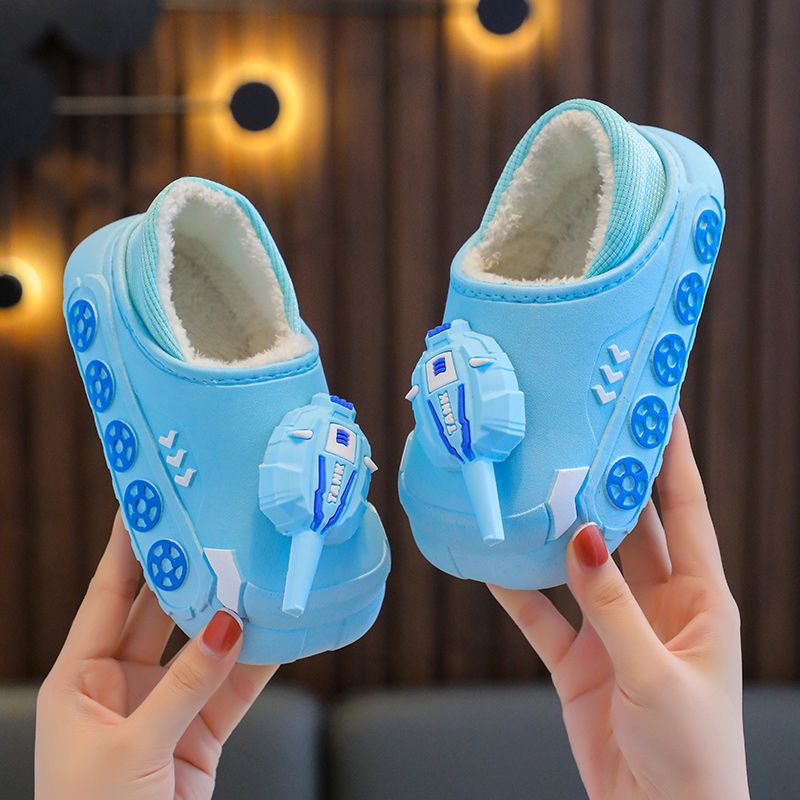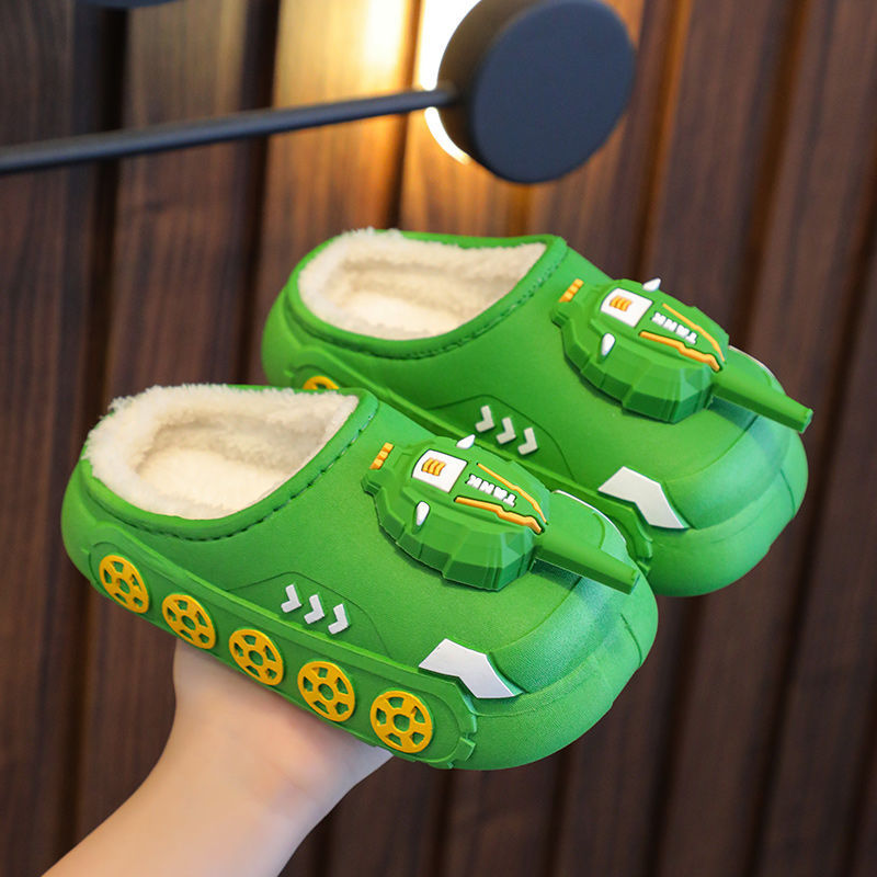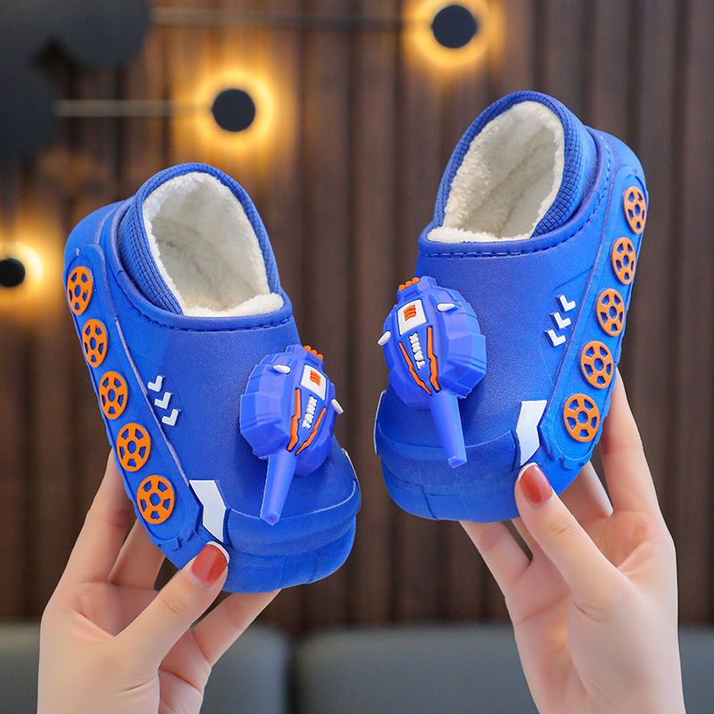 Новые Детские хлопковые тапочки с героями мультфильмов, осенне-зимняя теплая Нескользящая непромокаемая хлопковая обувь на флисовой подкладке для дома и улицы, пушистая обувь для мальчиков