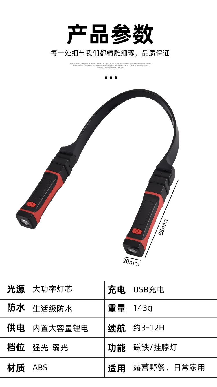 Трансграничный USB-зарядный светильник для чтения и обучения, светодиодный подвесной светильник на шею, уличное освещение для езды на велосипеде, ночной светильник для рыбалки, рабочий свет, ночной ходовой свет
