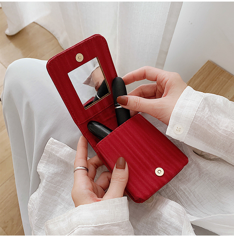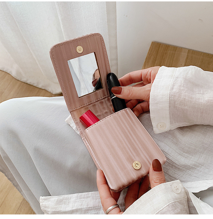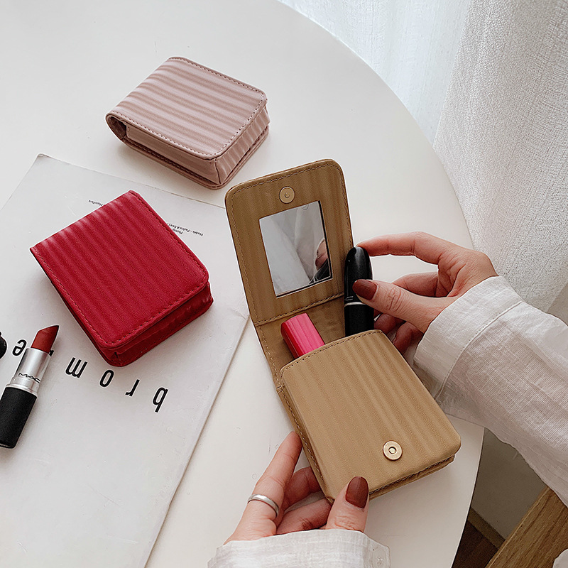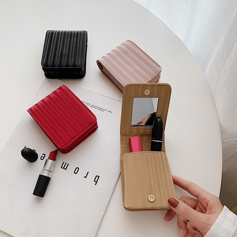 Женская мини-косметичка в стиле ins, портативная дорожная ручная косметичка с зеркальной сумкой для губной помады