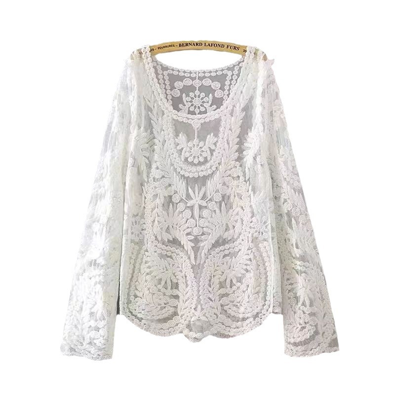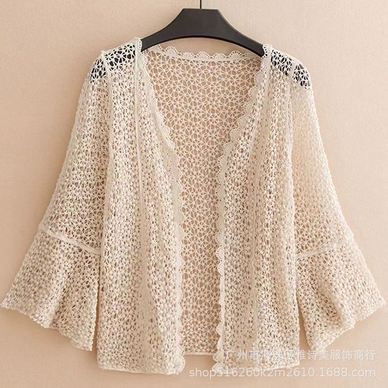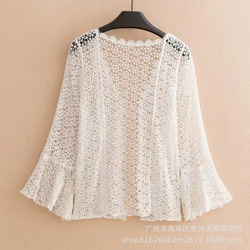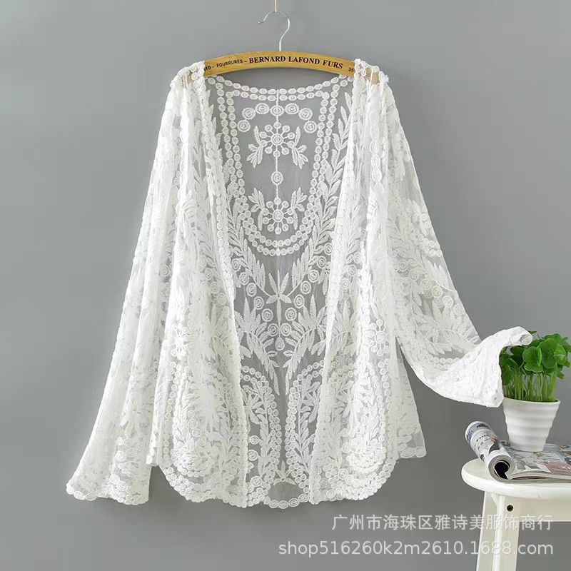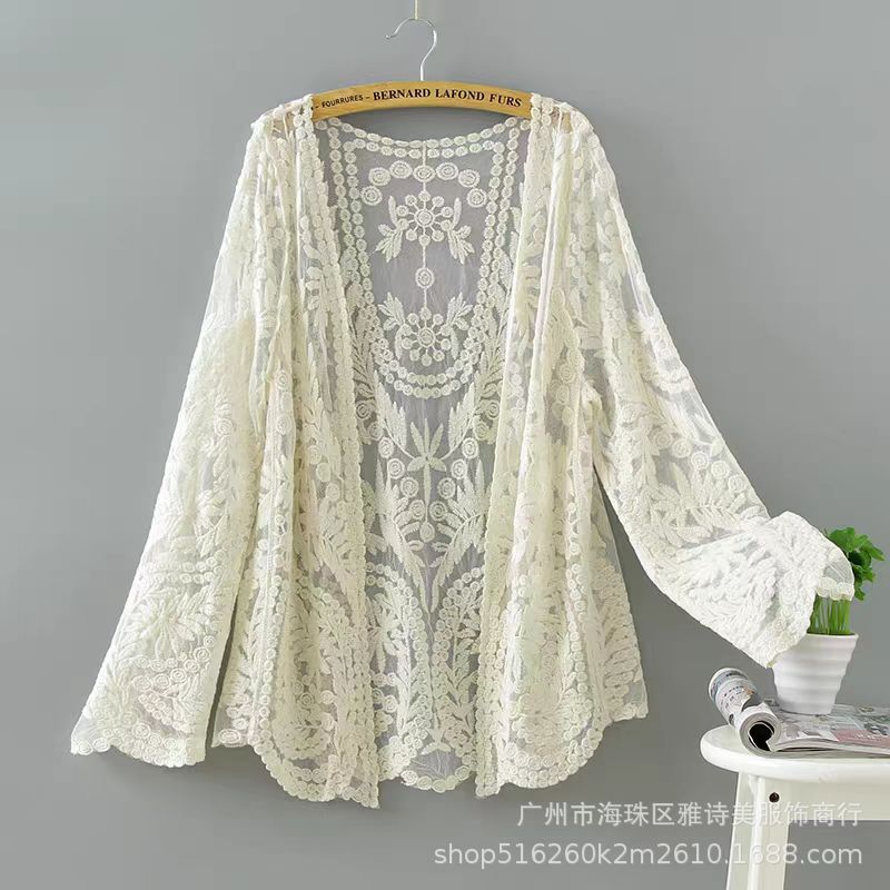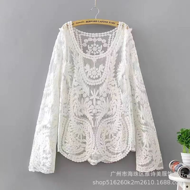 Сетчатое короткое солнцезащитное пальто, женский топ, верхняя одежда, Кардиган с длинным рукавом и вышивкой, полая Солнцезащитная рубашка