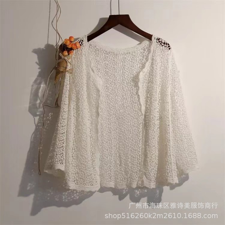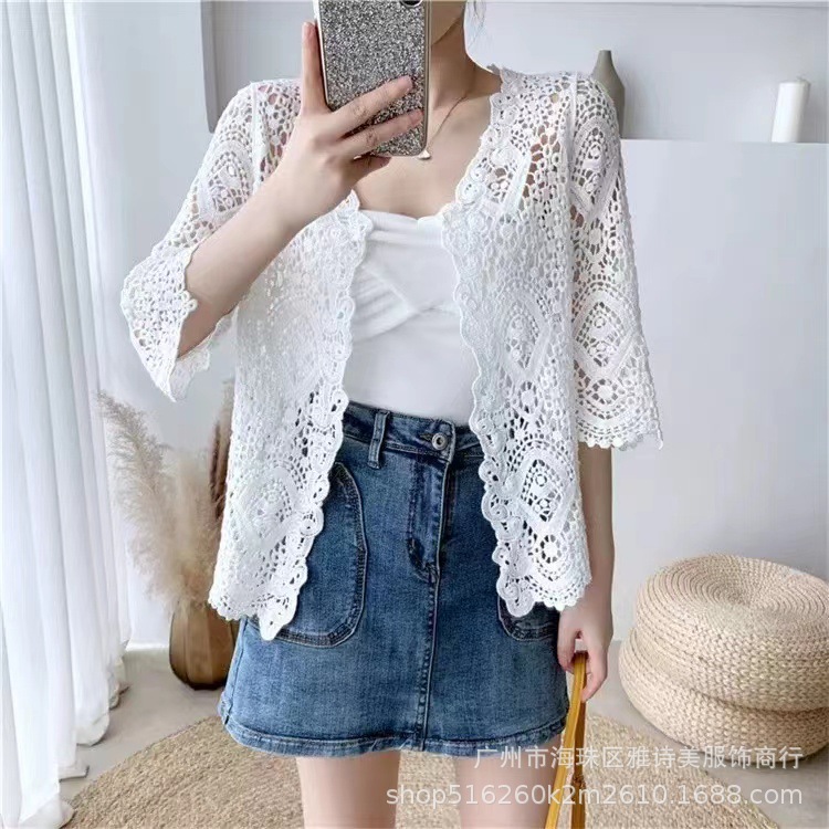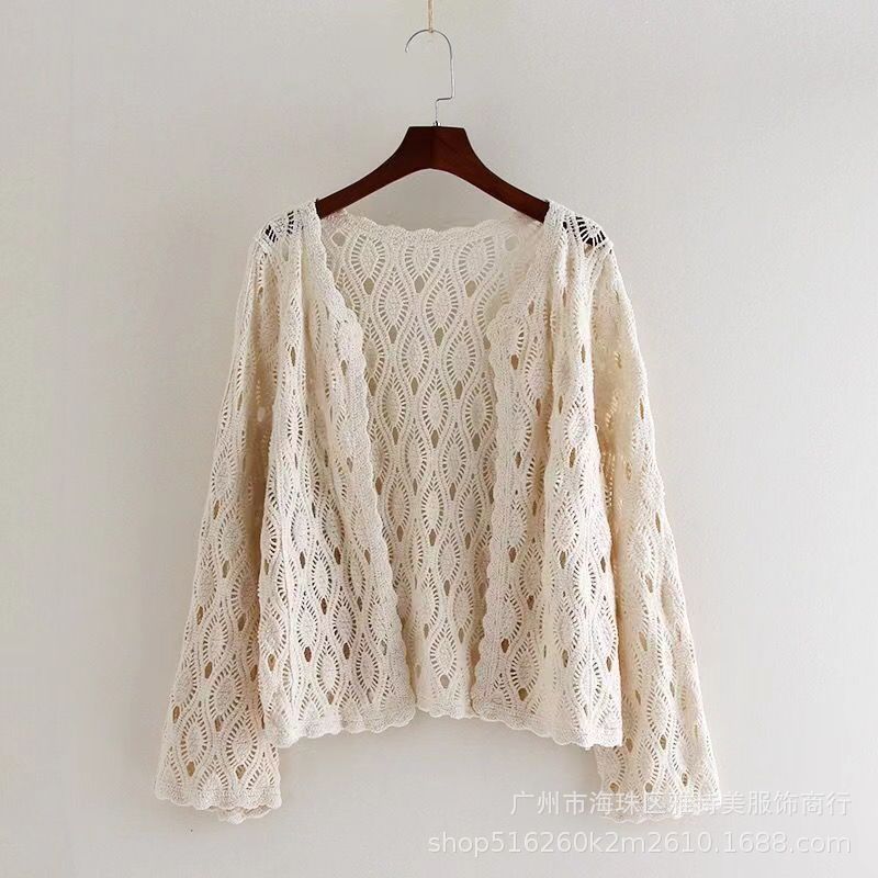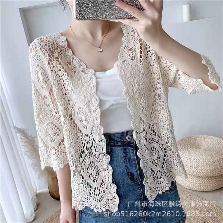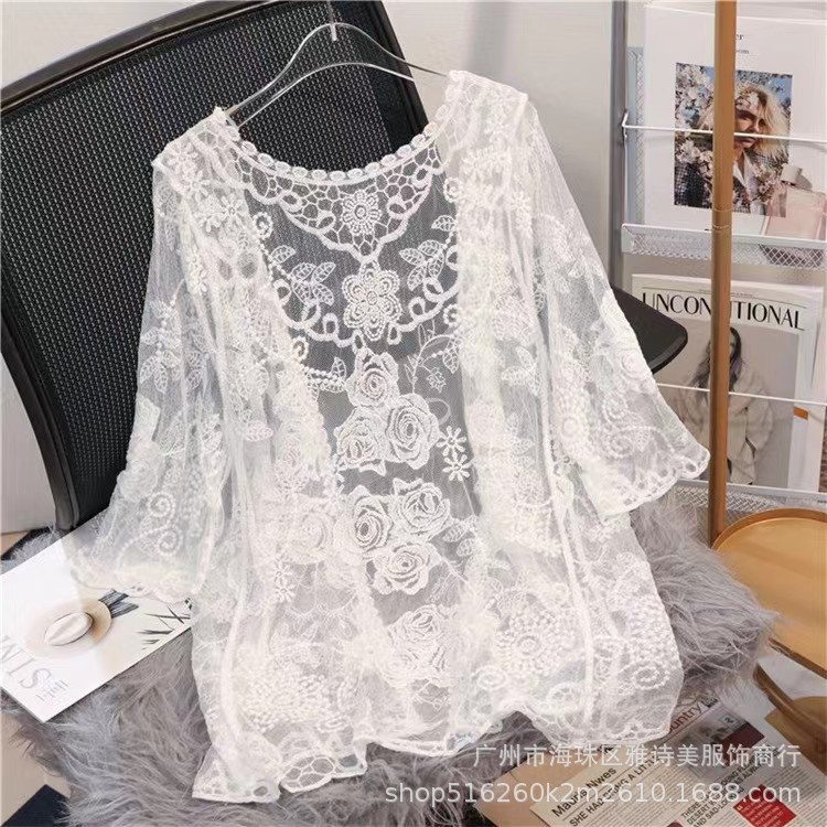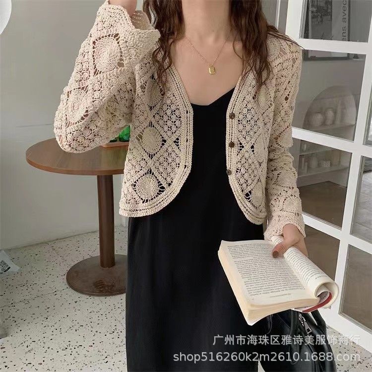 Сетчатое короткое солнцезащитное пальто, женский топ, верхняя одежда, Кардиган с длинным рукавом и вышивкой, полая Солнцезащитная рубашка