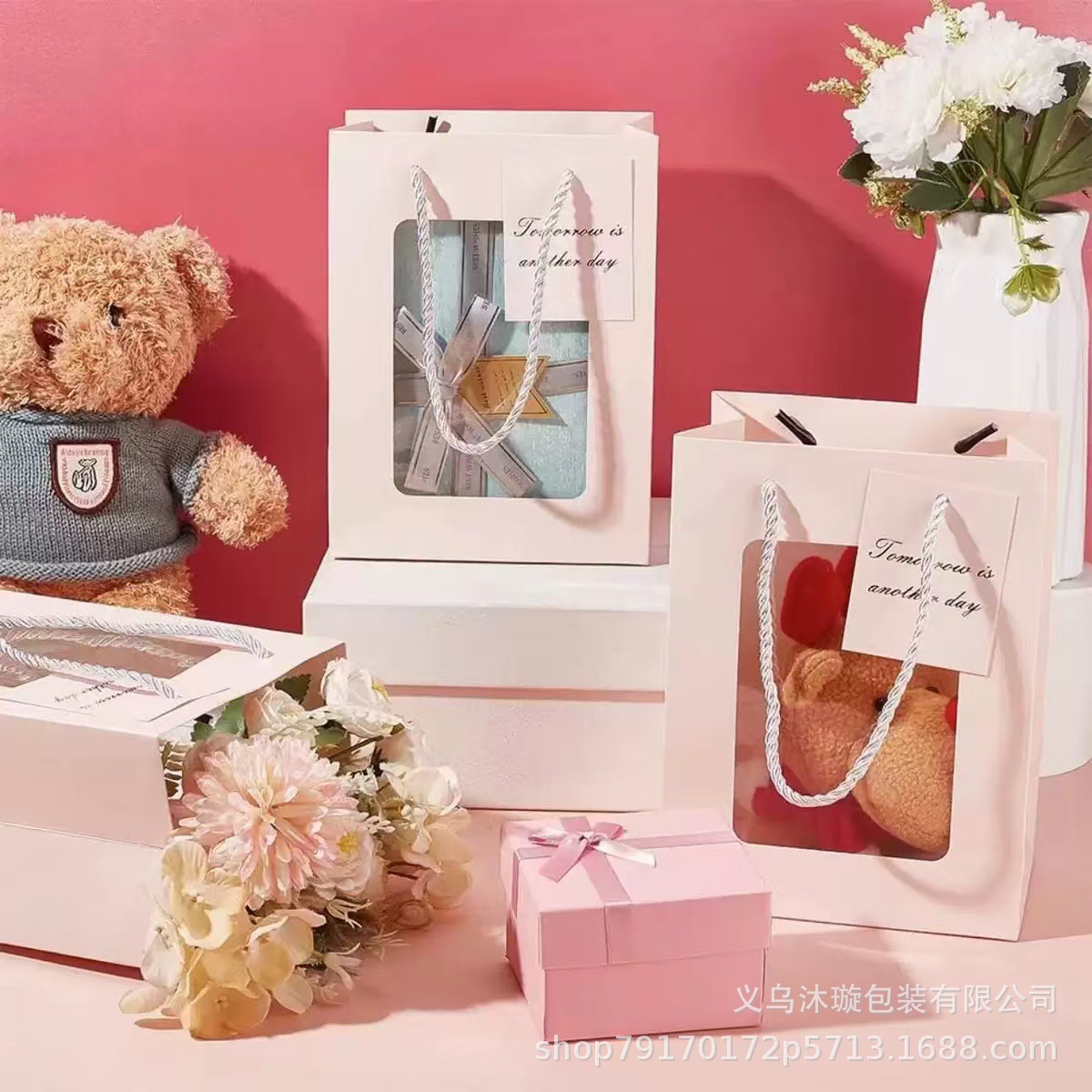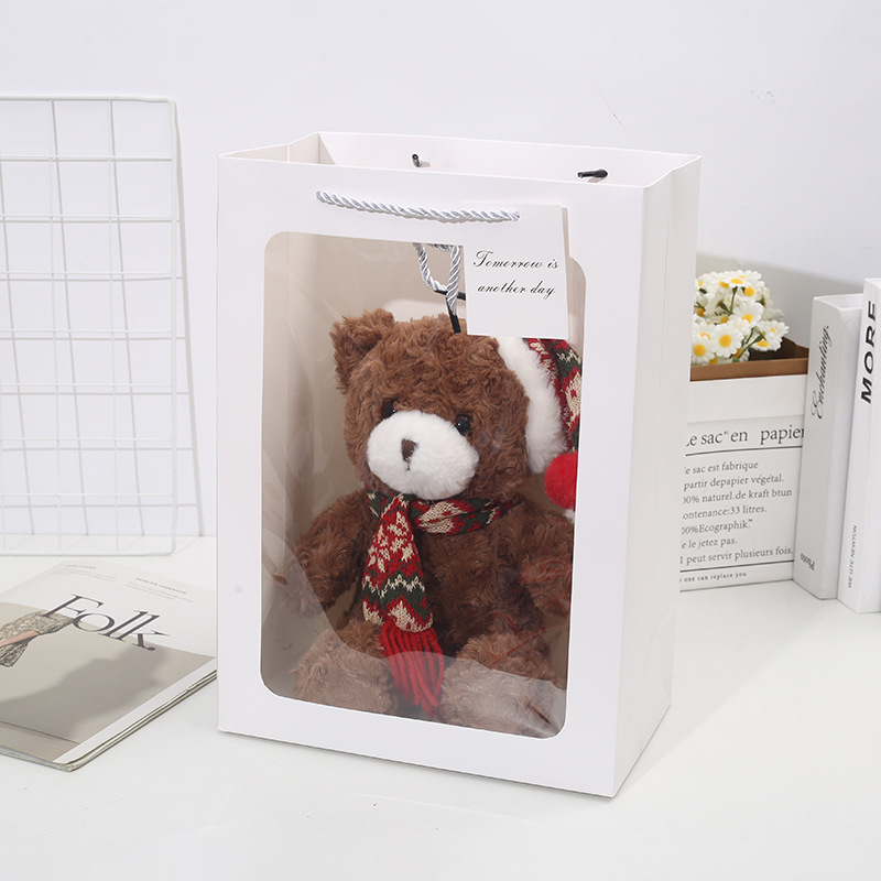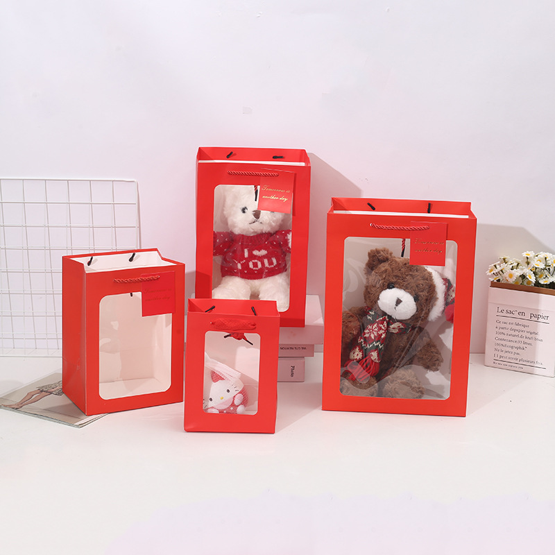 Праздничная подарочная упаковка сумка Красный новогодний товар окно прозрачный Подарочный пакет Новогодняя упаковка товаров супермаркет хозяйственная сумка