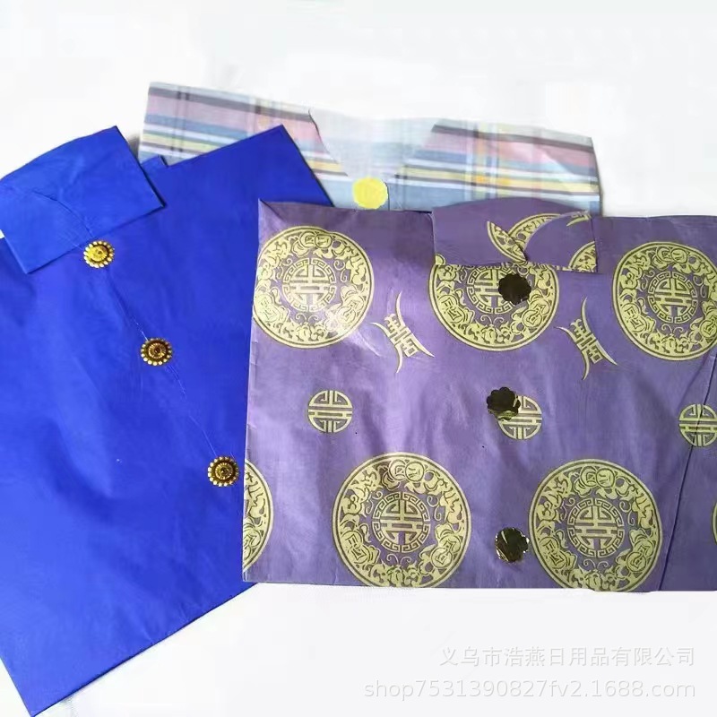 Оптовые предложения для мужчин и женщин: бумажная одежда, бумажные халаты, бумажные костюмы Тан с брюками, бумажные деньги, горящая бумага, принадлежности для подметания могил.