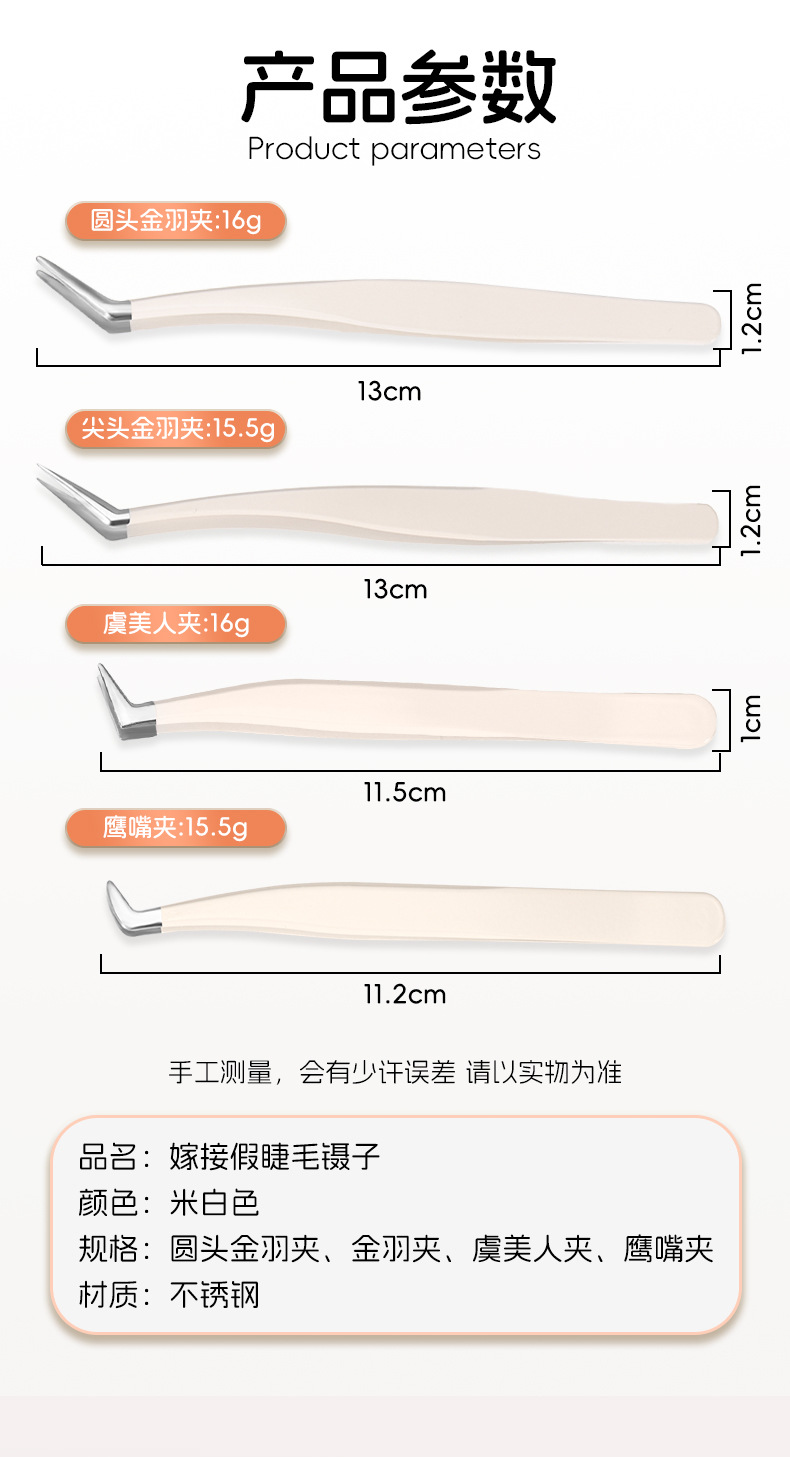 新款现货嫁接睫毛镊子不锈钢喷漆美睫镊子假睫毛嫁接辅助器金羽夹