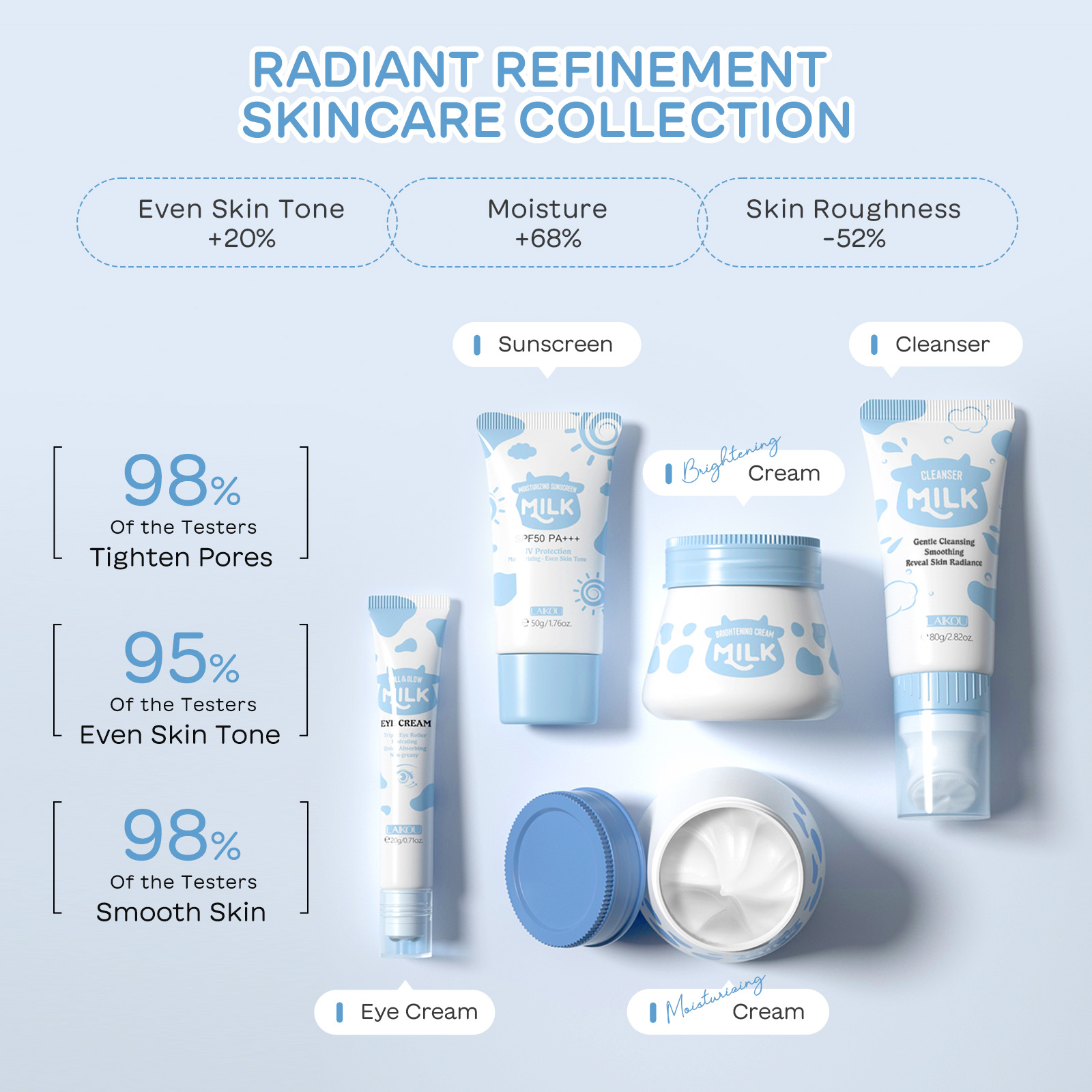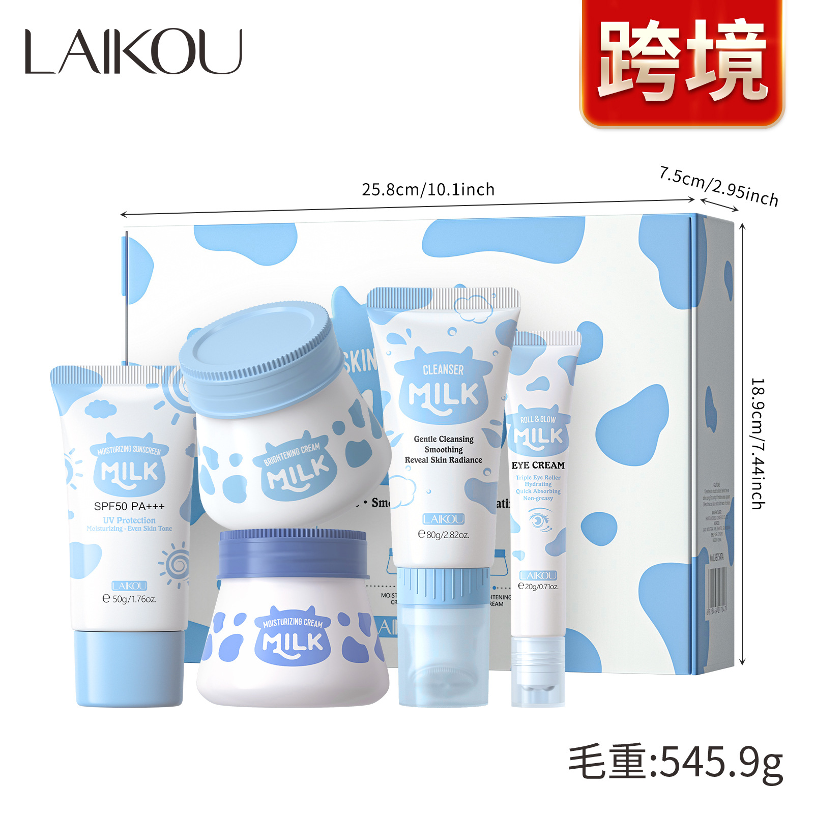 Набор средств для ухода за кожей через границу. Набор для ухода за кожей с молоком LAIKOU. Экспортный набор для ухода за кожей из 5 предметов.