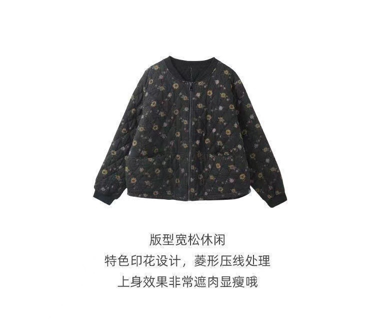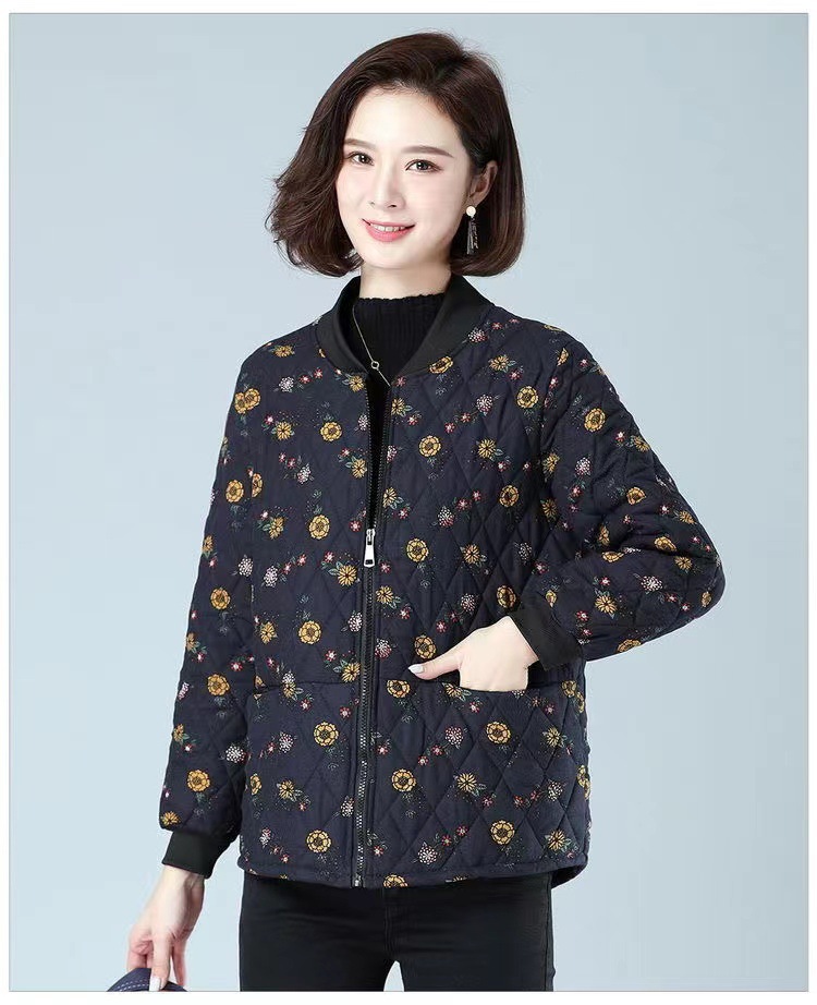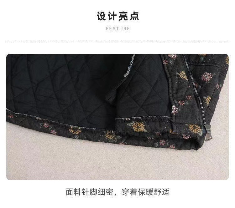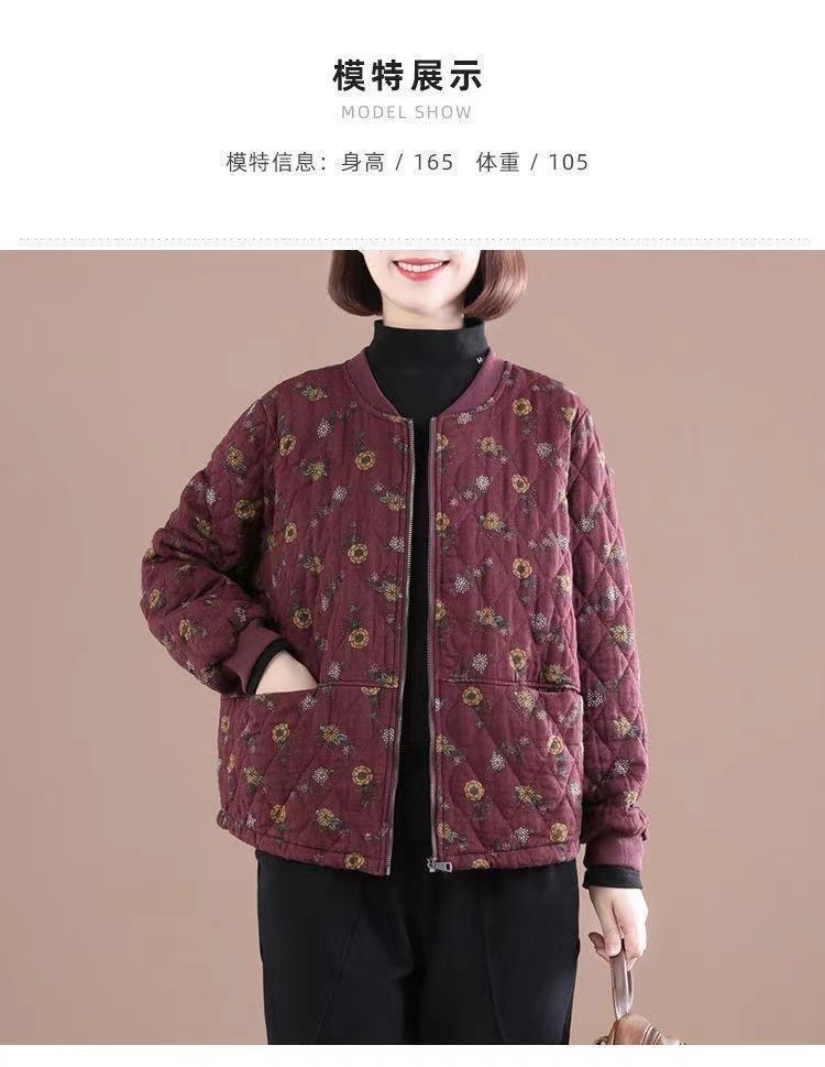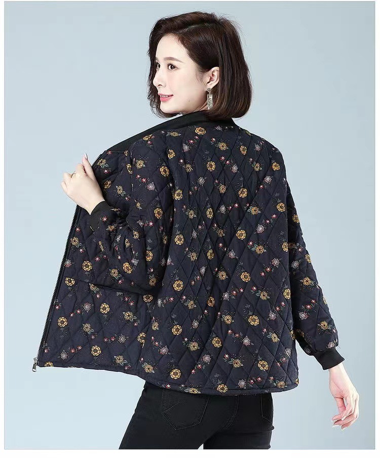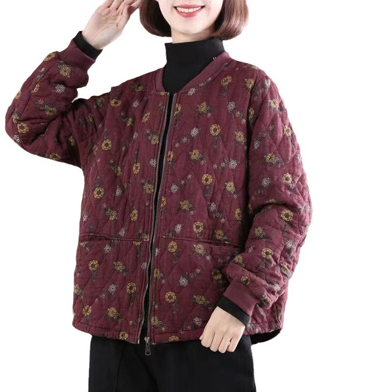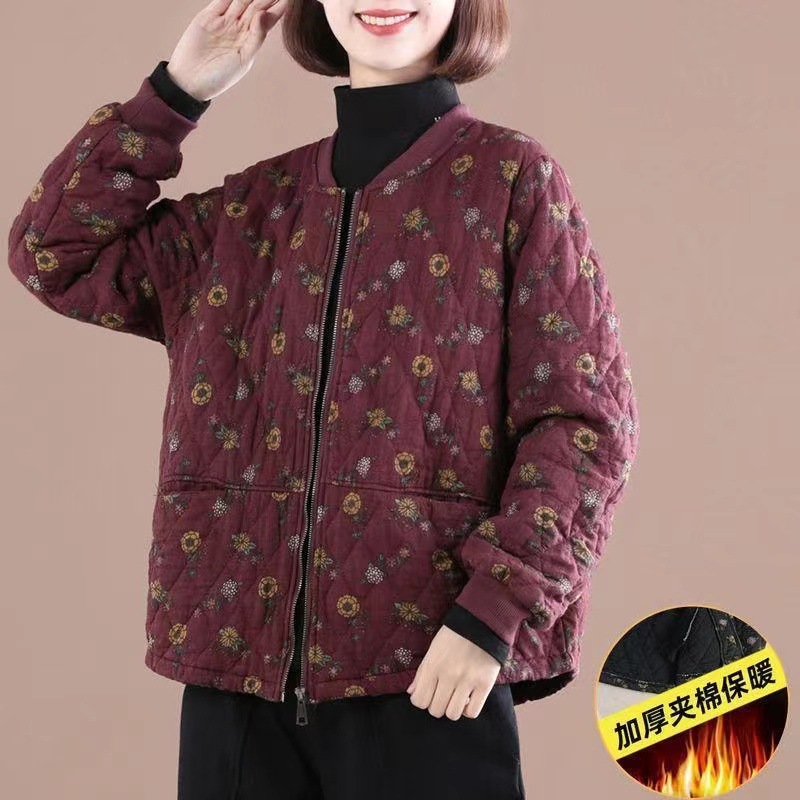 Женская утепленная хлопковая куртка большого размера в стиле ретро на осень-зиму 2025 года, для женщин среднего и старшего возраста, с цветочным принтом