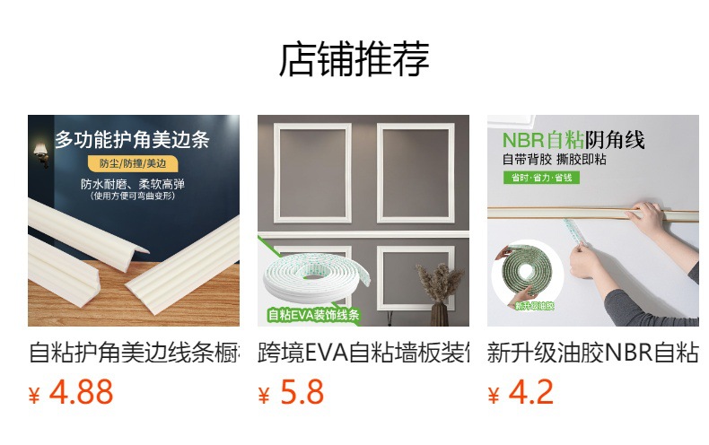 本品为多用途自粘装饰线条,可平贴,可阴角,可阳角。