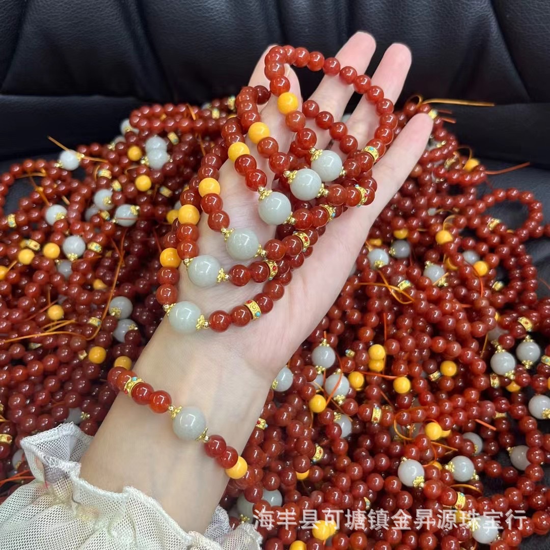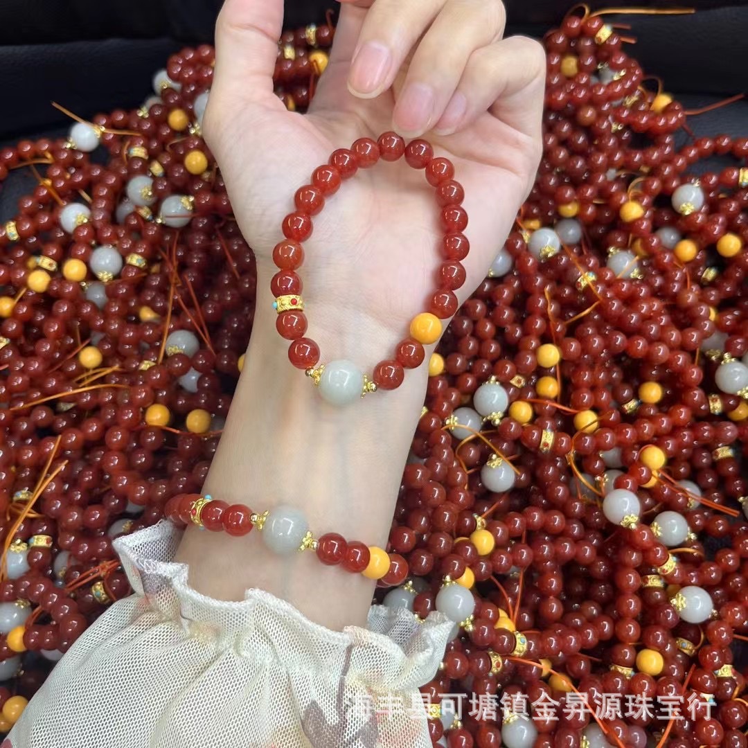 天然红色玛瑙手链南红手串和田玉蜜蜡古法金夏天时尚生日礼物直播 批发量越大价格越低,可供直播间长期合作,欢迎来电私聊