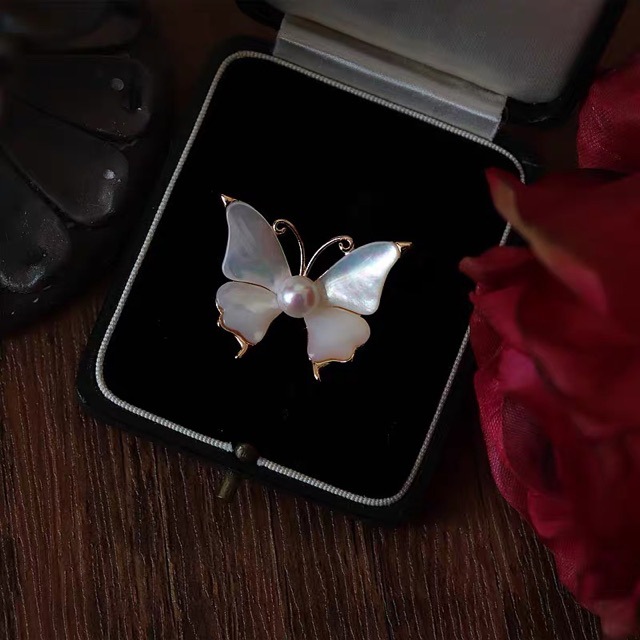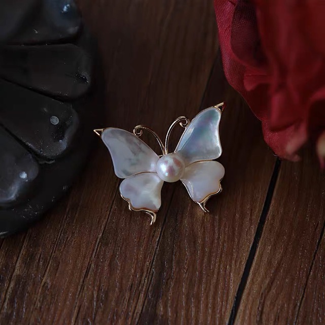 Ретро белая бабочка фидий брошь насекомое легкое роскошное натуральное пресноводное жемчуг высокого уровня простой воротник