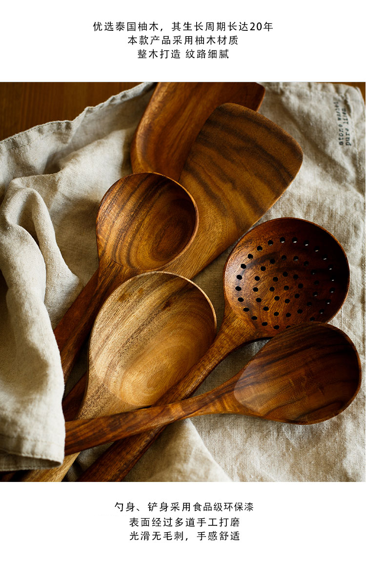 Дуршлаг из тикового дерева с длинной ручкой; Тик длинная ручка салатная ложка; Тик квадратная изогнутая Лопата; Тик квадратная изогнутая Лопата три провода; Тик длинная ручка угловая ложка; Тик с длинной ручкой трехпроволочная ложка; Вилка для салата с длинной ручкой из тикового дерева