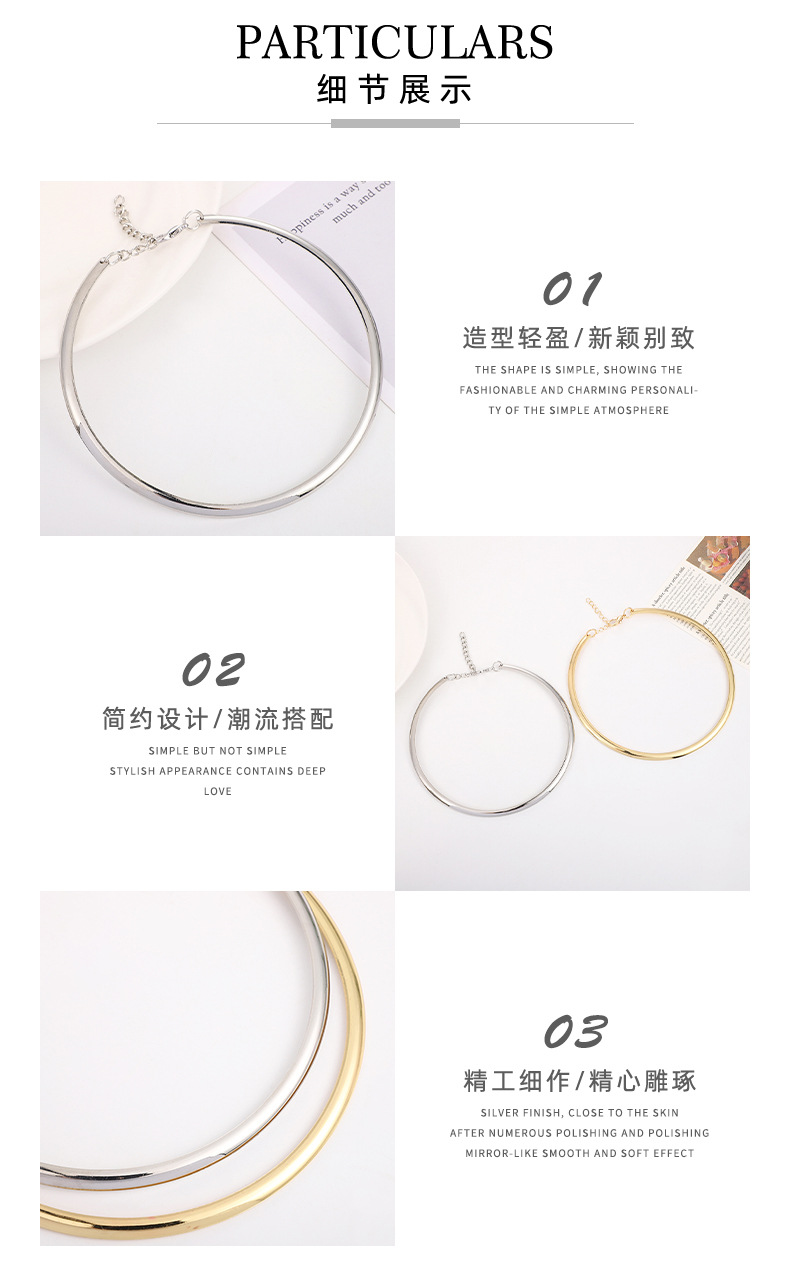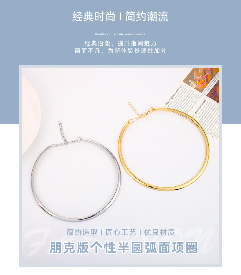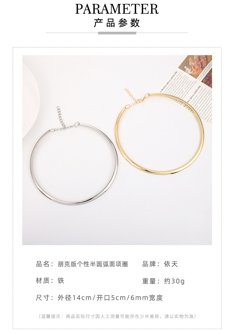 Трансграничная Горячая продажа панк-версия персонализированный полукруглый изогнутый воротник ниша глянцевое ожерелье в холодном стиле модное металлическое кольцо