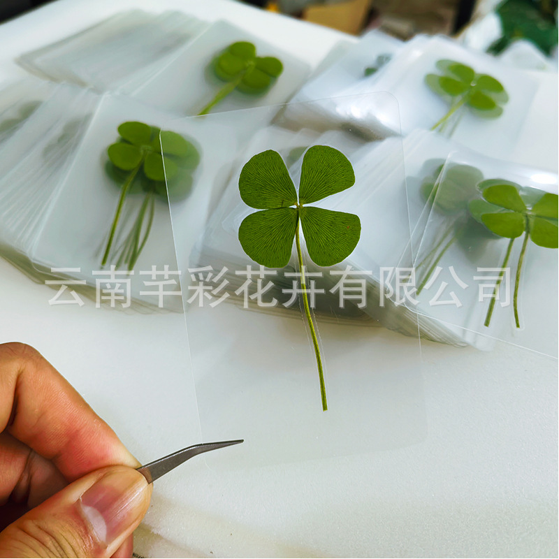 Четырехлистный клевер, сушеный цветок, тисненая клеверная закладка, образец растений, клей-наклейка «сделай сам», обучающий тисненый материал для малышей