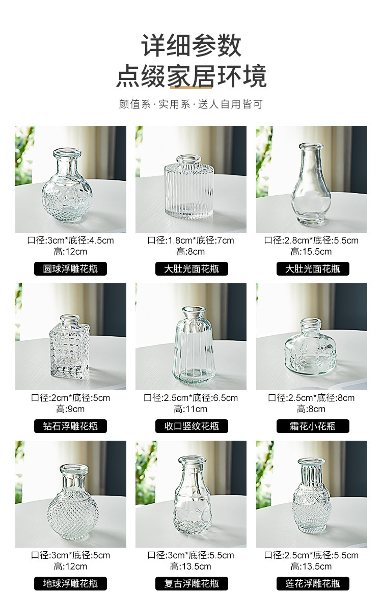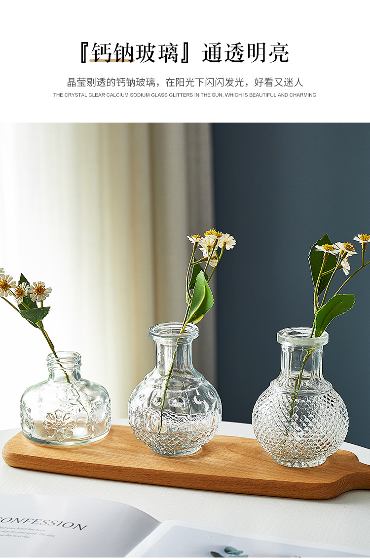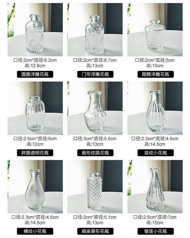 Маленькая ваза в европейском стиле, оптовая продажа с фабрики, простая стеклянная ваза, прозрачная винтажная Цветочная композиция, карманная ваза с несколькими спецификациями