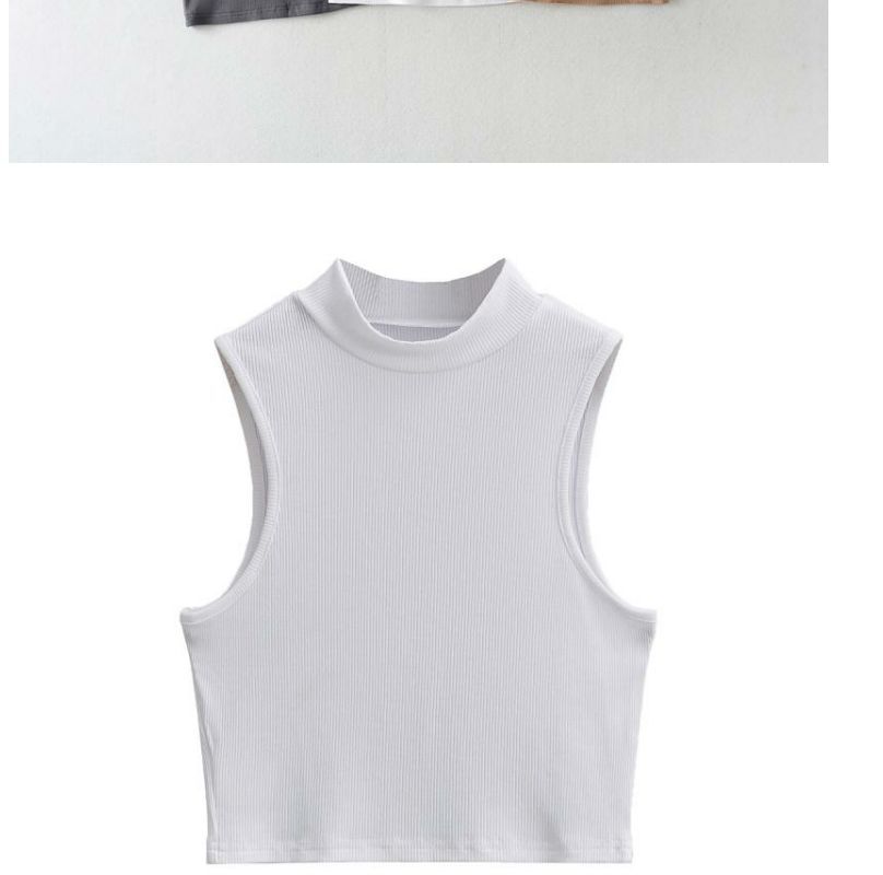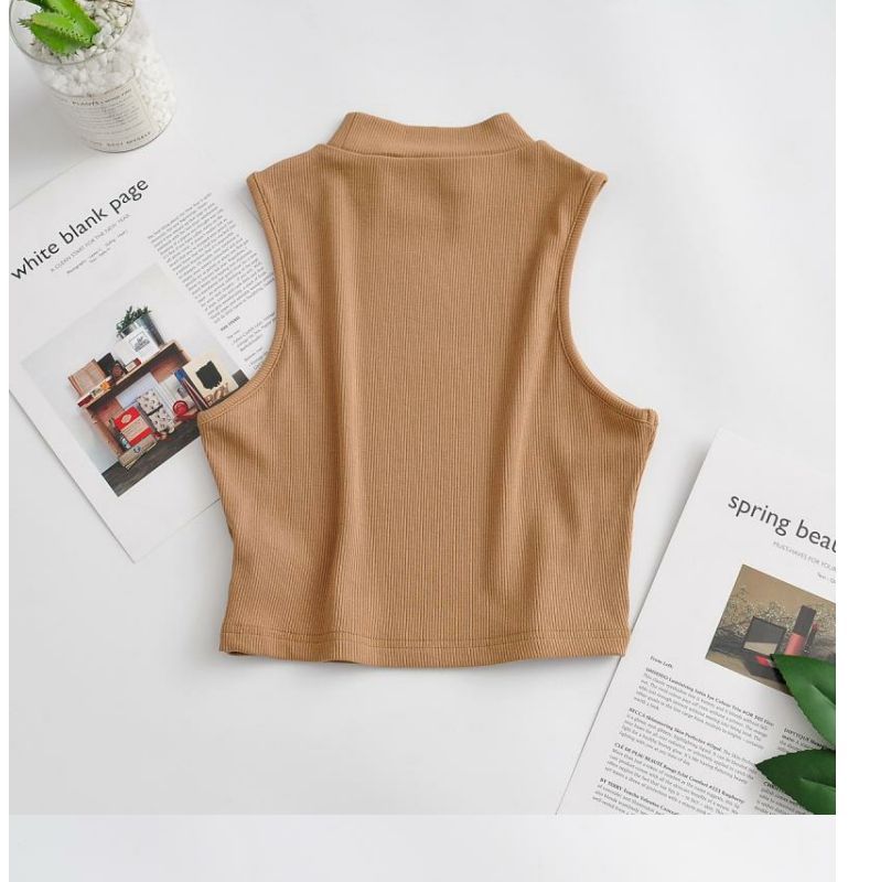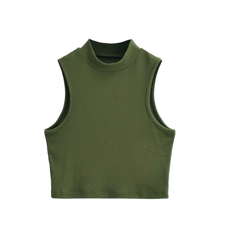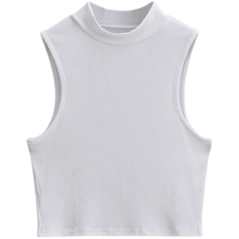 Европейский и американский Летний Новый маленький ретро-жилет с высоким воротом, женский эластичный тонкий облегающий короткий спортивный топ без рукавов для пупка
