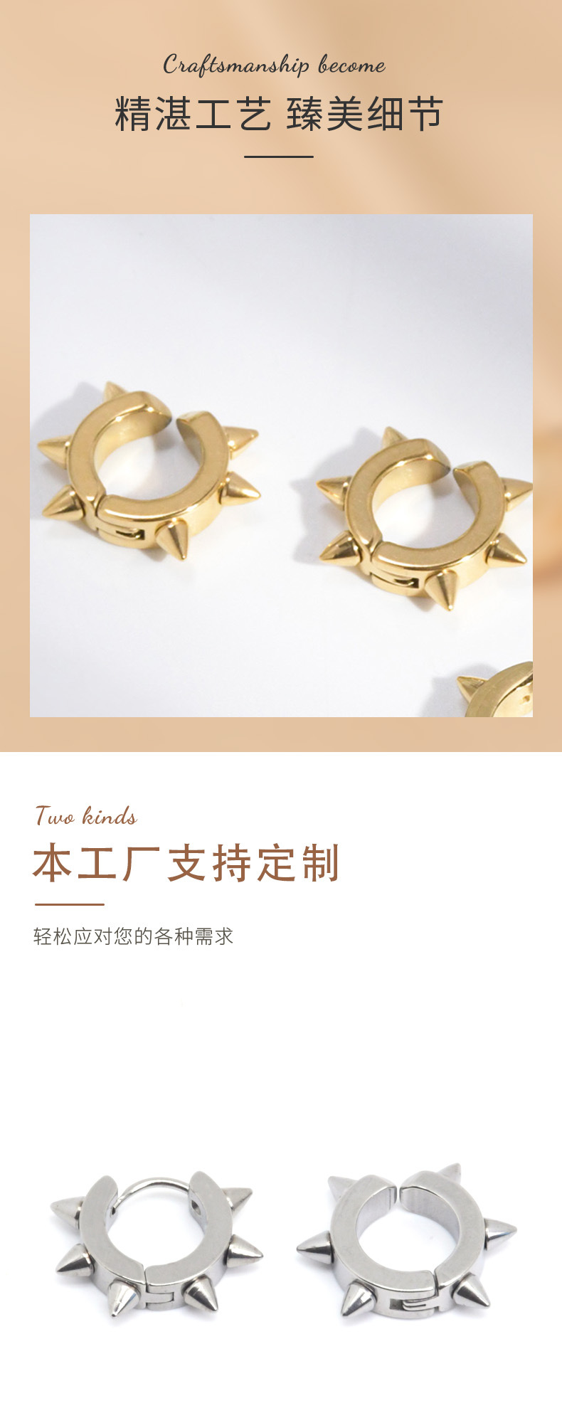 Персонализированные серьги и клипсы без прокола, прямые поставки с фабрики, модные серьги в корейском стиле, панк-стиль, конусные серьги-клипсы из нержавеющей стали с заклепками.