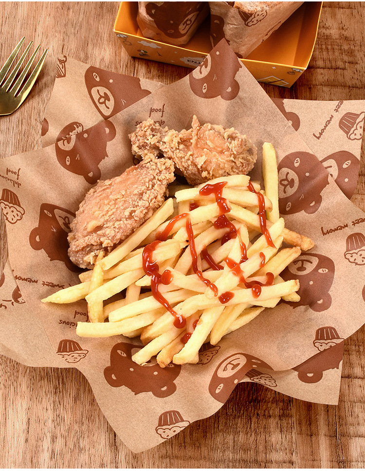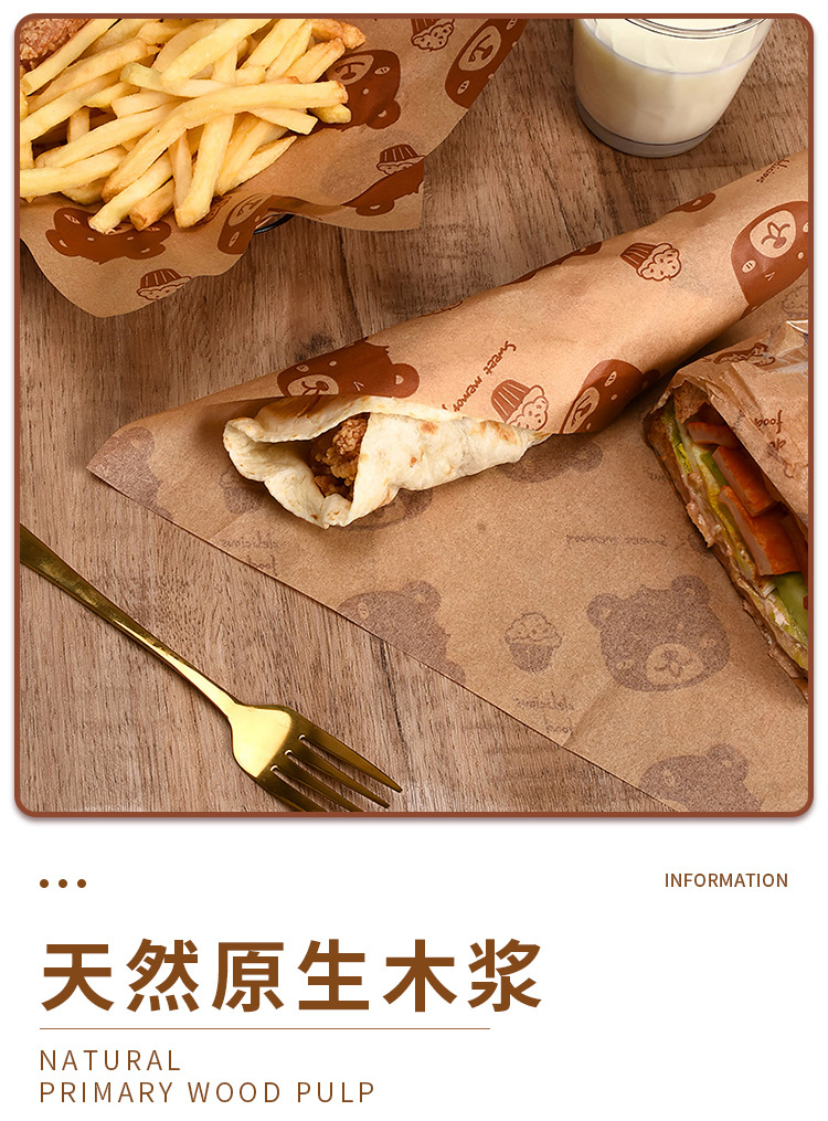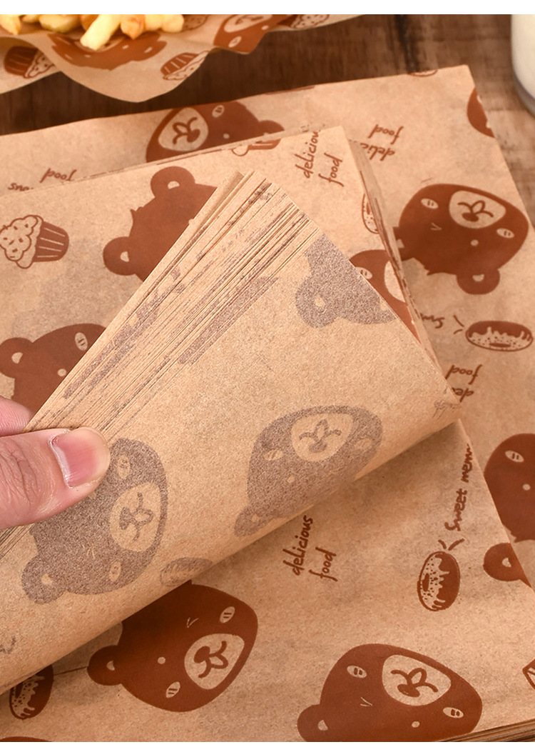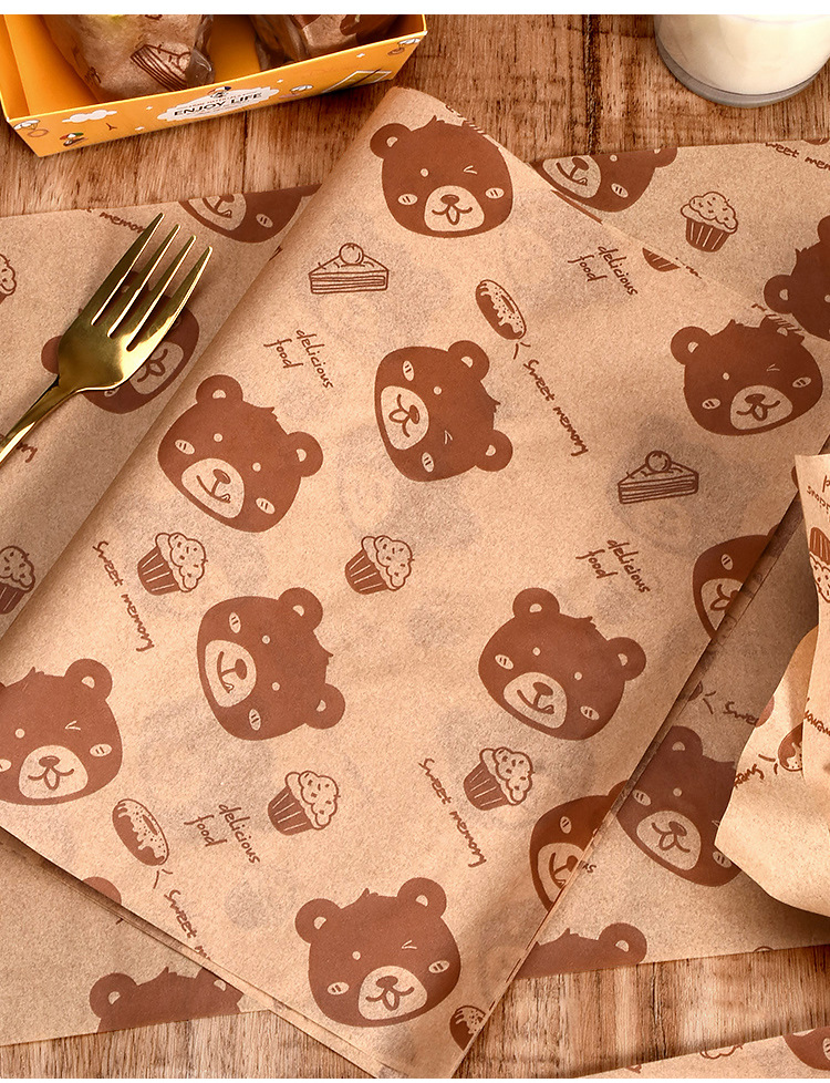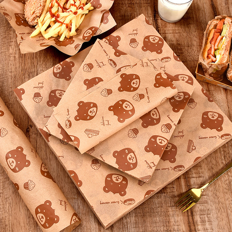Выпечка бурого медведя коврик бумага печать маслостойкая бумага Жареные Закуски Чипсы тарелка бумага коврик бумага гамбургер Сэндвич Оберточная Бумага